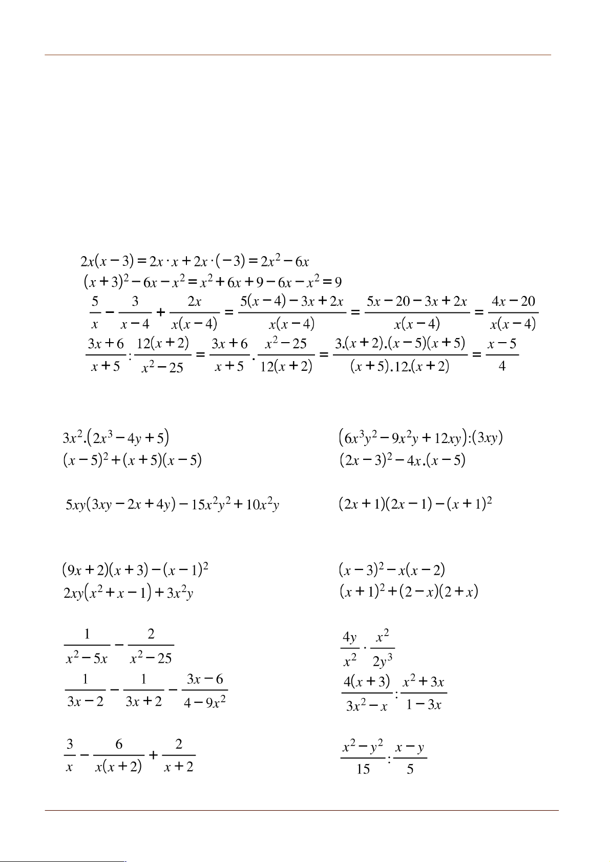 Bài 2. Thực hiện các phép tính sau: a) b) c) 3x(2x – y) – 5y2