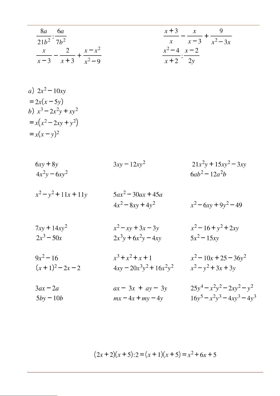 Bài 1. Phân tích các đa thức sau thành nhân tử: a) b) c) d) e) 3x3 + 6x2y f)