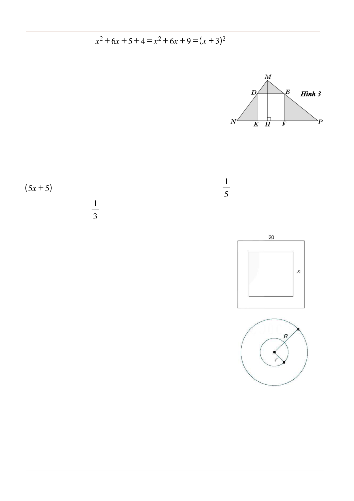 (cm), người ta khoét một hình tròn ở giữa có bán kính r (cm), r < R.