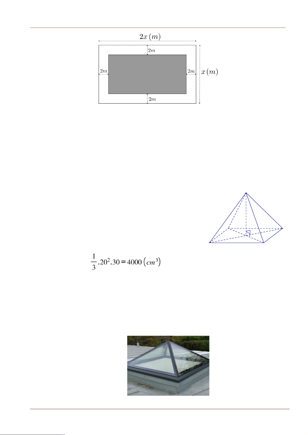 Bài 5. Một khu vườn hình chữ nhật có chiều dài là 2x (m) và chiều rộng là x (m) với x >