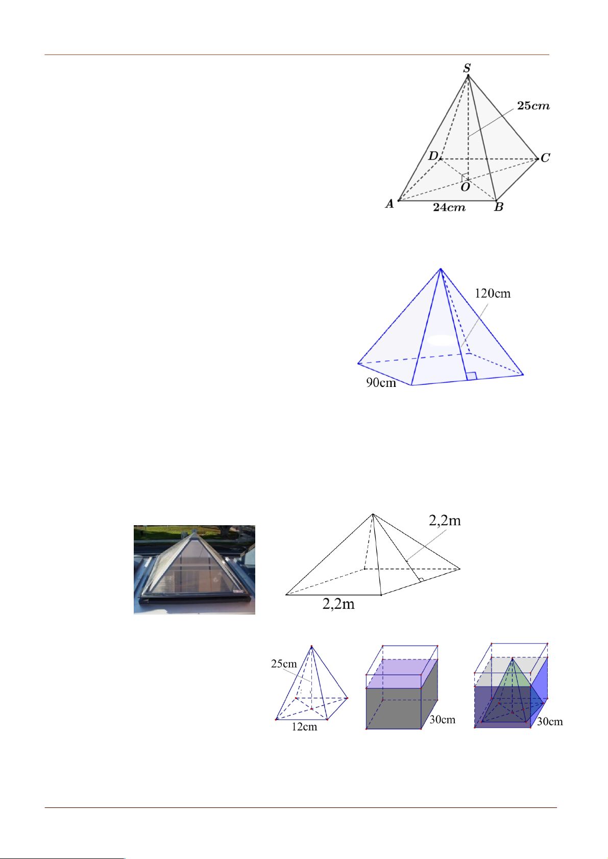 Bài 1. Một mái che giếng trời có dạng hình chóp tứ giác đều với độ dài cạnh đáy 120 dm,