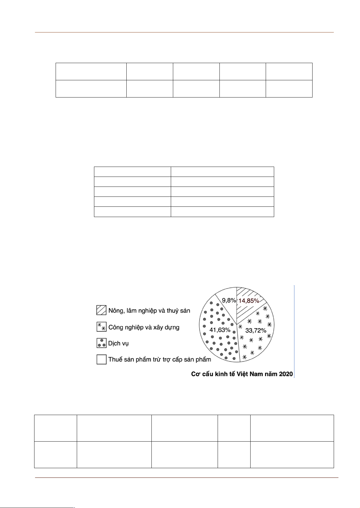 b) Biểu đồ hình quạt tròn sau thể hiện cơ cấu kinh tế của Việt Nam năm 2020.