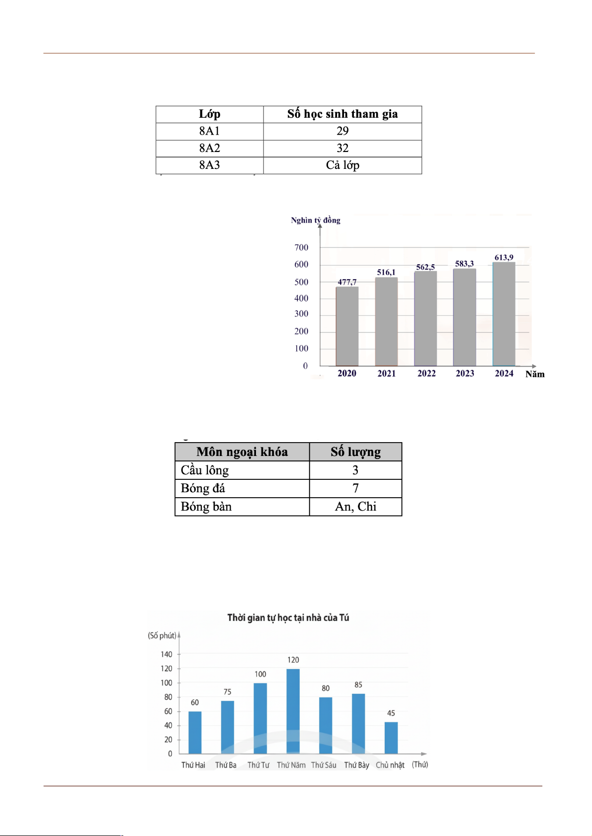 Bài 2. a) Thông tin về số học sinh của ba lớp 8 tham gia hoạt động trải nghiệm tại Mũi