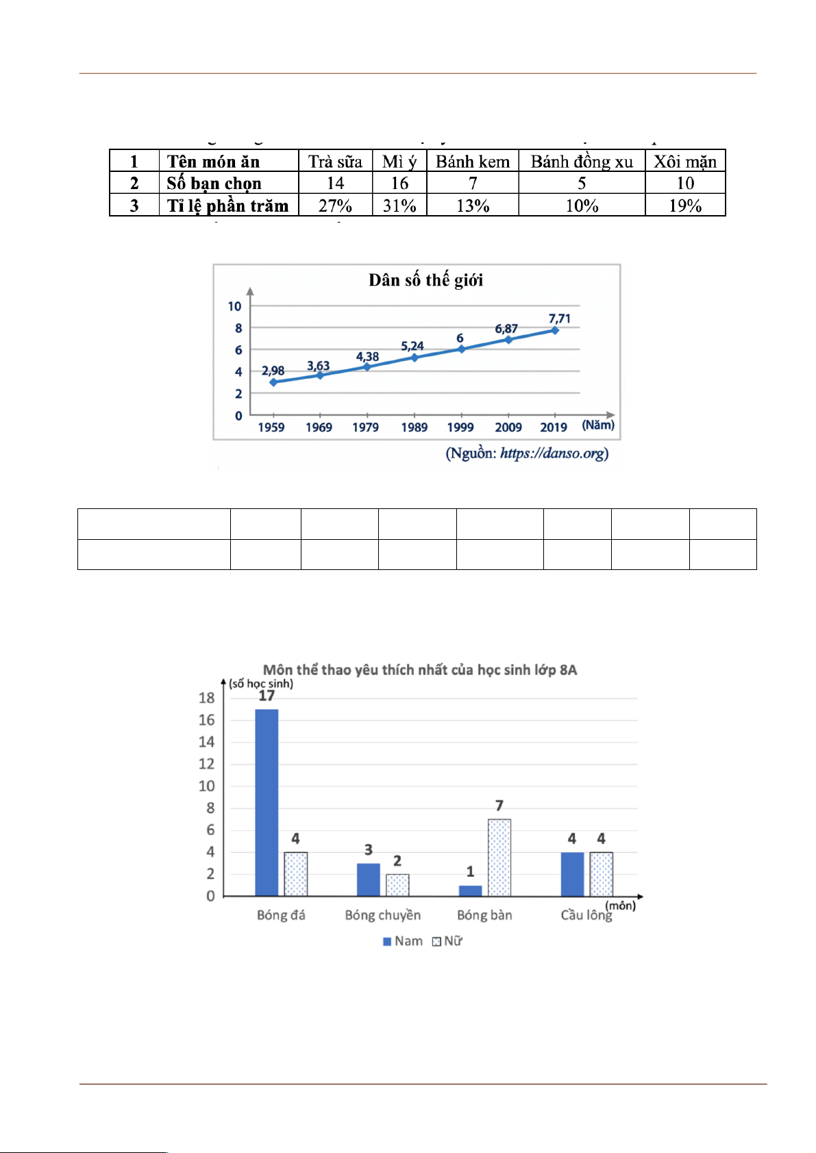 Bài 1. a) Thông tin về số học sinh của lớp 8A tham gia Hội khoẻ Phù Đổng được cho bởi bảng thống kê sau: Môn thể thao