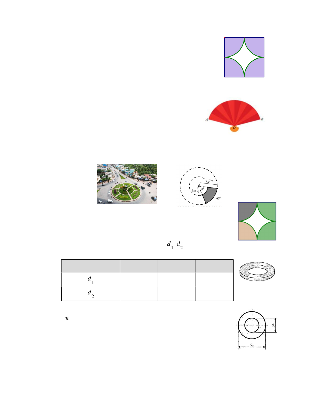 quạt tròn, diện tích hình viên phân, diện tích hình vành khuyên.