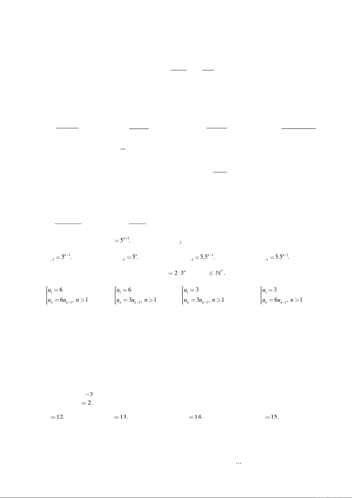 . Công thức truy hồi của dãy số đó là: n n u 6 u 6 u 3 u 3 1 1 1 1 A. . B. . C. . D. . u 6u , n 1 u 3u , n 1 u 3u , n 1 u 6u , n 1 n n 1 n n 1 n n 1 n n 1