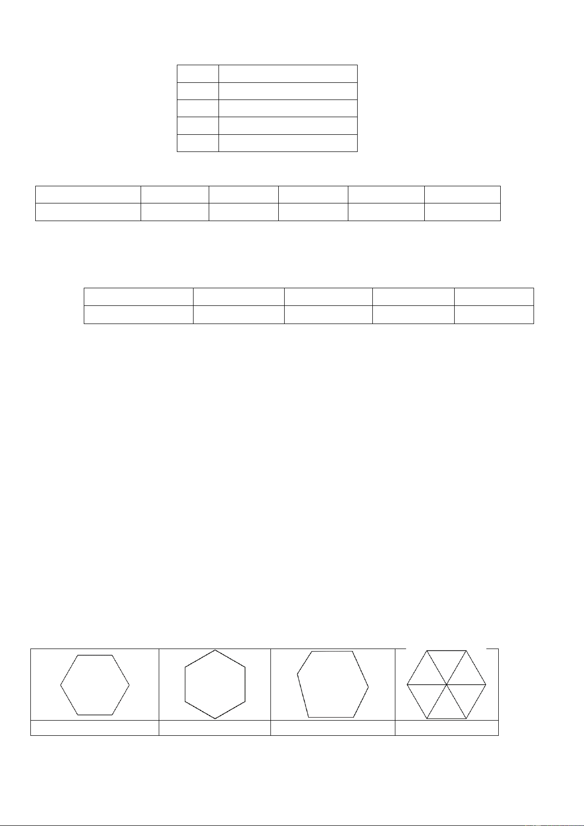 Câu 32: Hình nào sau đây không phải là hình lục giác đều: Hình 1 Hình 2 Hình 3 Hình 4 A. Hình 1 B. Hình 2 C. Hình 3 D. Hình 4