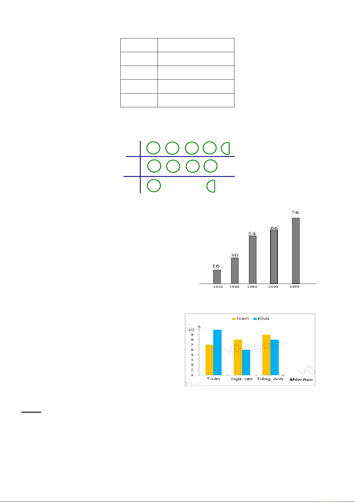 Câu 36. Điểm thi của Nam và Khải được biểu diễn trong biểu đồ cột kép ở hình sau: