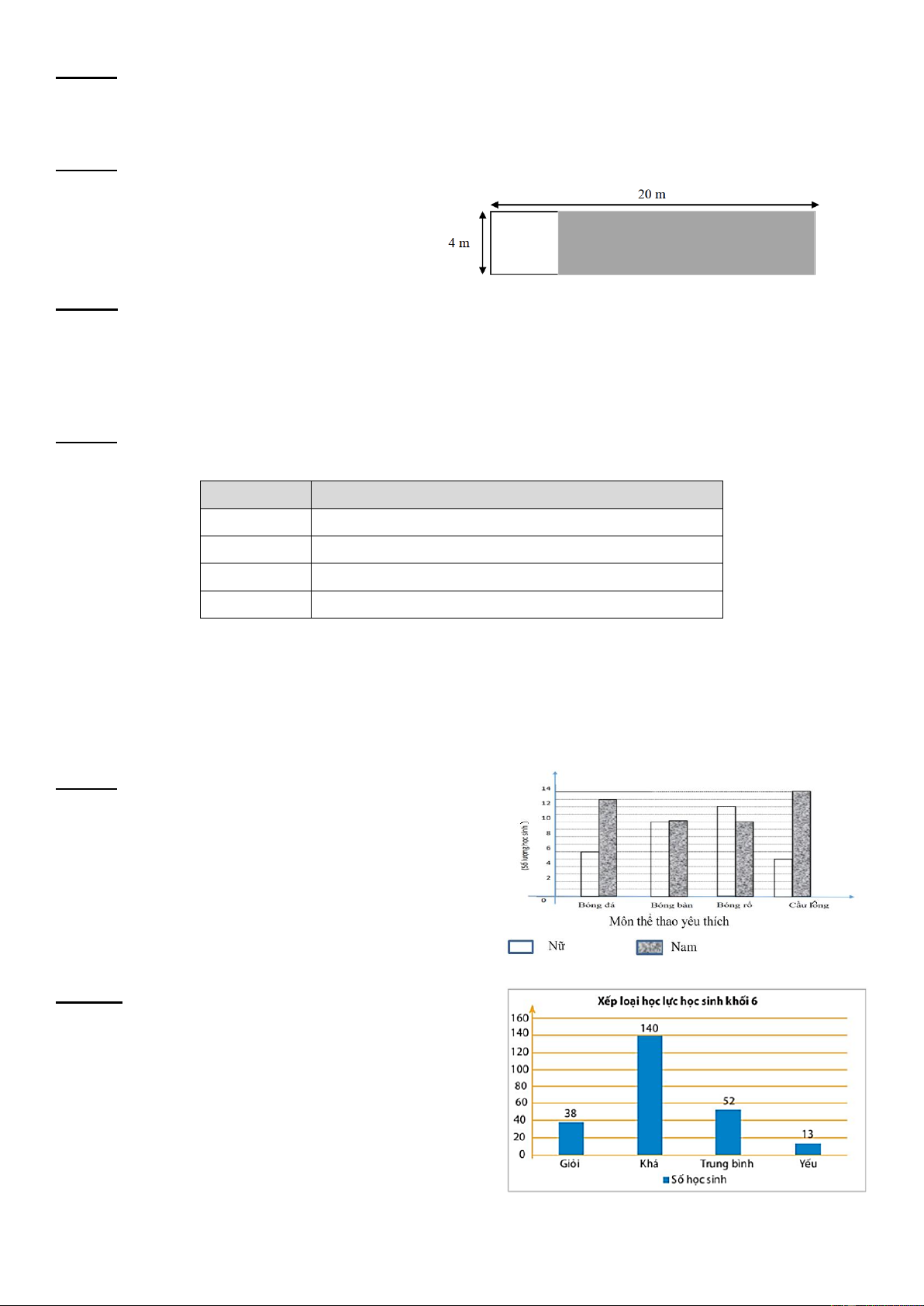 Câu 13: Một khu đất có dạng hình chữ nhật có chiều dài là 20m và chiều rộng là 4m.