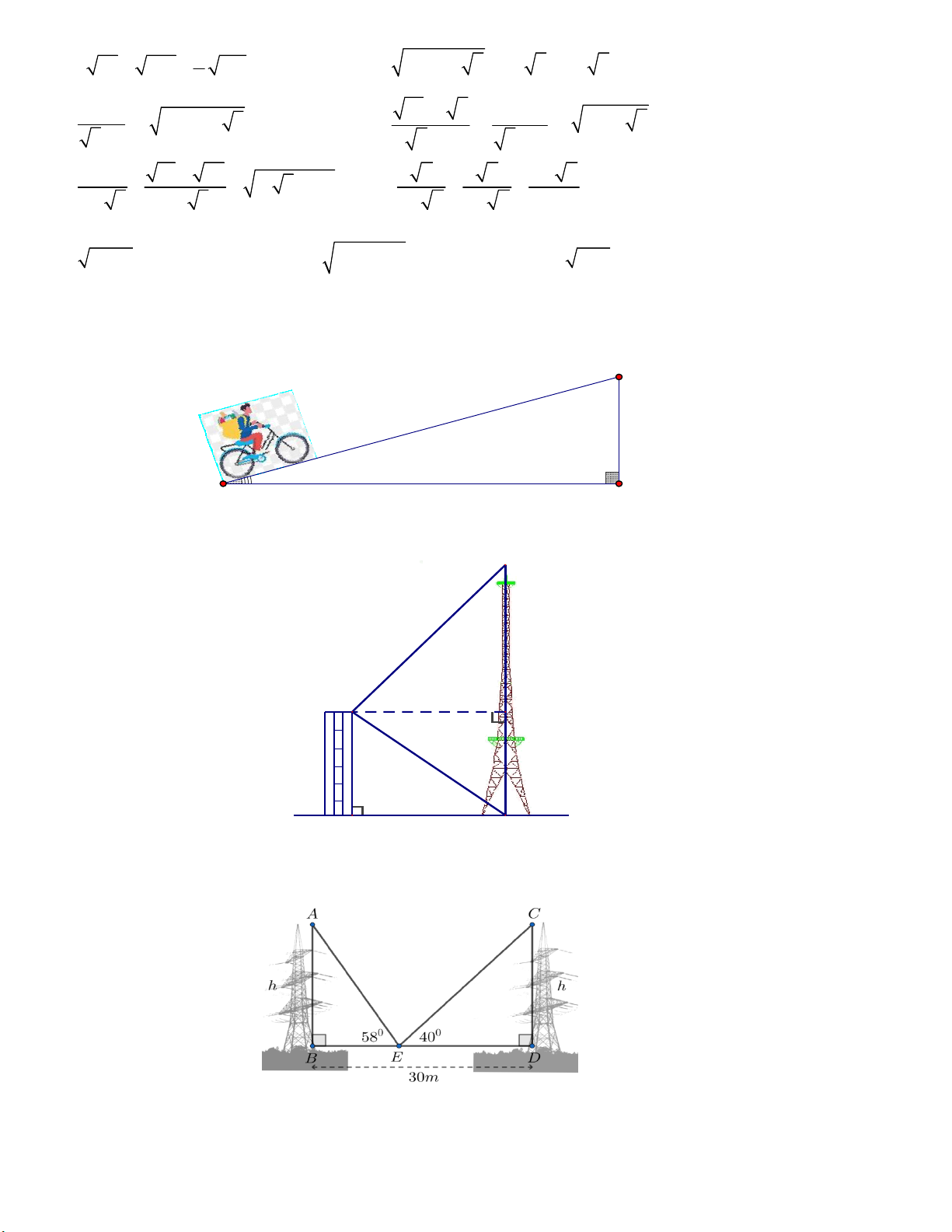 Bài 11. Từ nóc một cao ốc cao 30 m người ta nhìn thấy chân và đỉnh một ăng–ten với các góc hạ và nâng lần