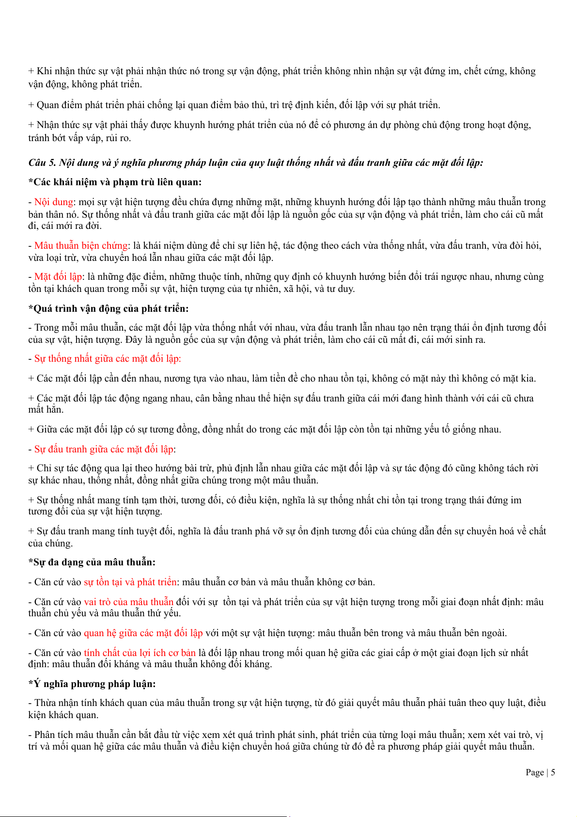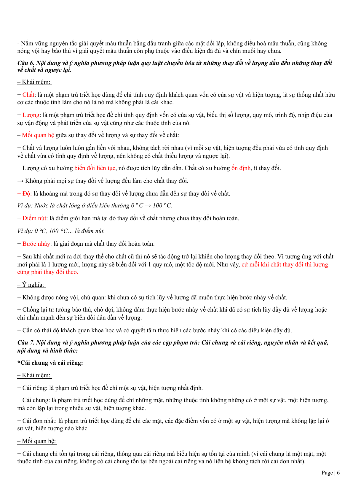 + Chống lại tất cả các loại quan điểm của chủ nghĩa duy tâm về phạm trù vật chất.