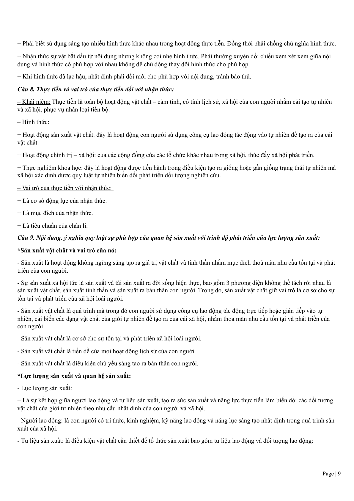 - Tư liệu sản xuất: là điều kiện vật chất cần thiết để tổ thức sản xuất bao gồm tư liệu lao động và đối tượng lao động: Page | 9