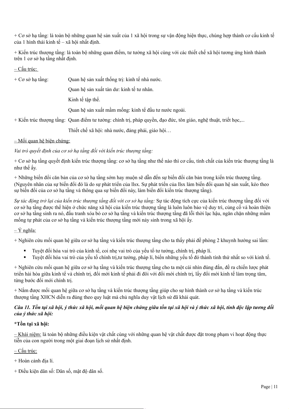 Câu 10. Quan hệ biện chứng giữa cơ sở hạ tầng và kiến trúc thượng tầng của xã hội. Ý nghĩa phương pháp luận: – Khái niệm: Page | 10