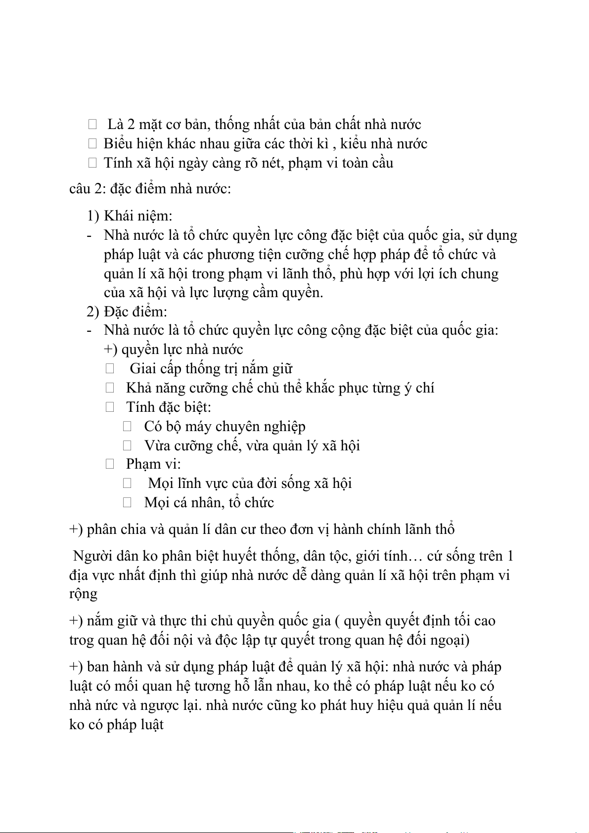 câu 2: đặc điểm nhà nước: 1) Khái niệm: