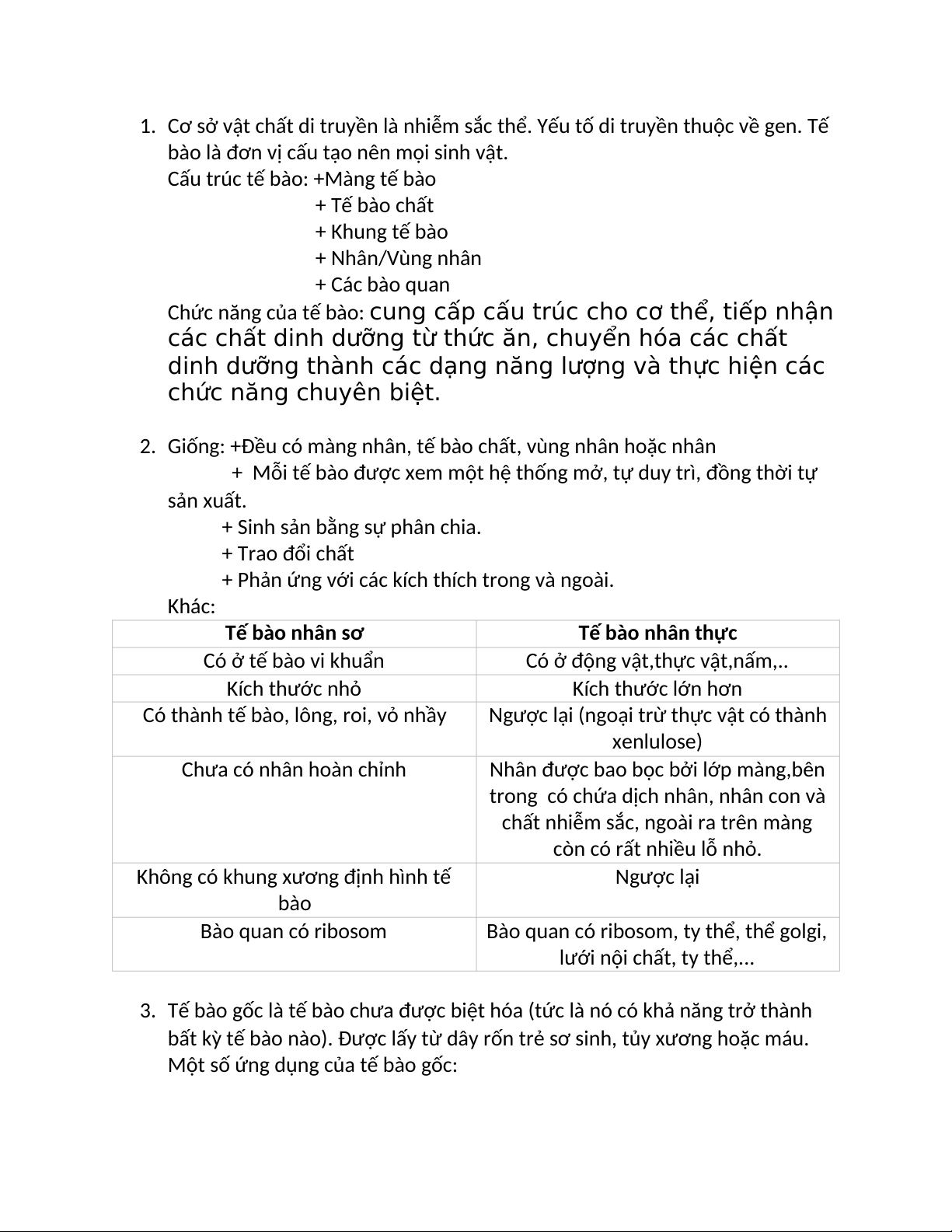 3. Tế bào gốc là tế bào chưa được biệt hóa (tức là nó có khả năng trở thành