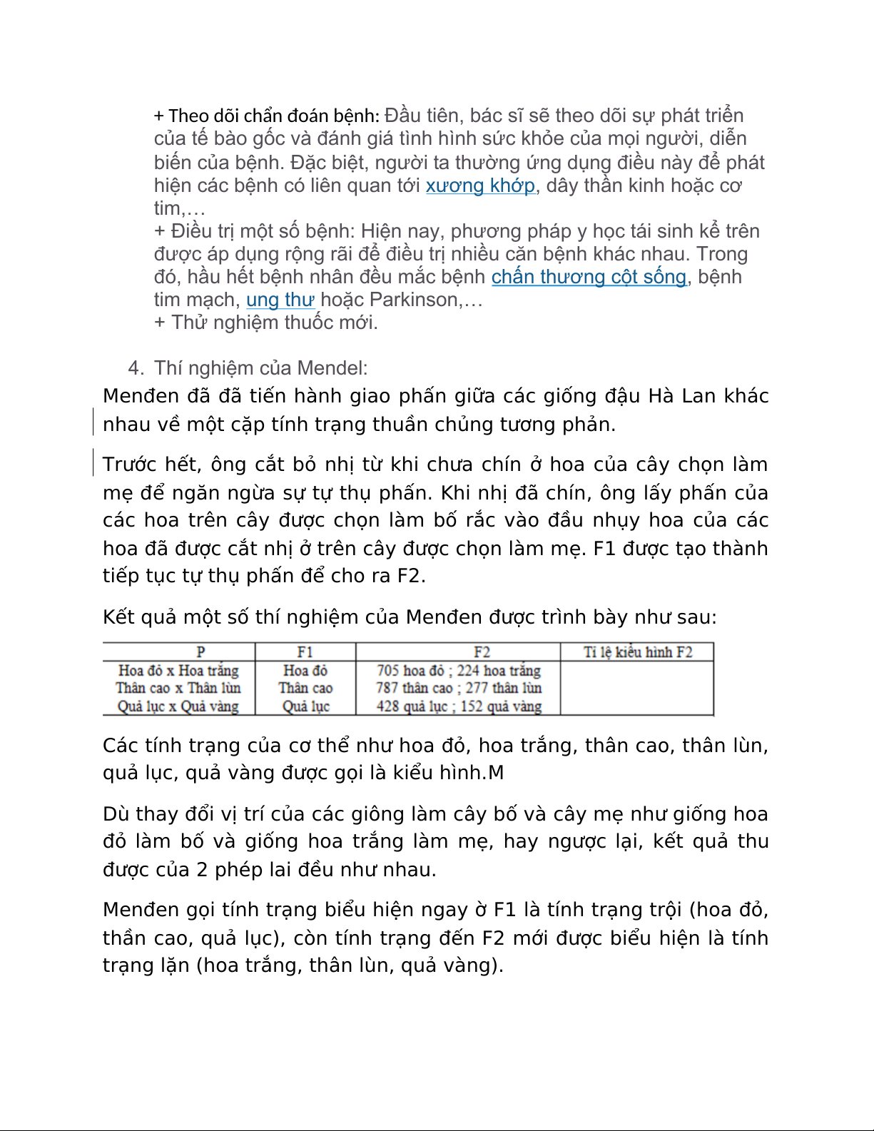 4. Thí nghiệm của Mendel: