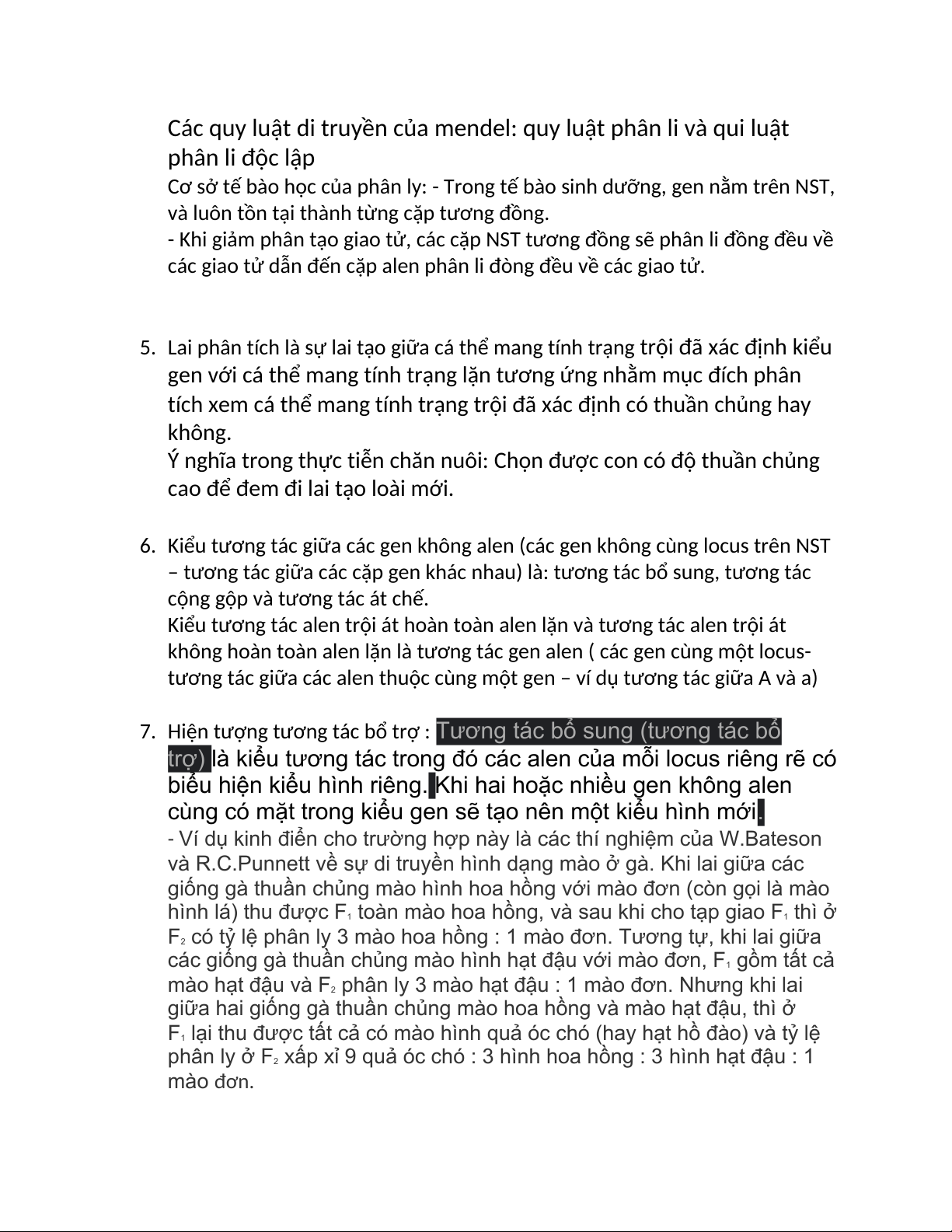 7. Hiện tượng tương tác bổ trợ : Tương tác bổ sung (tương tác bổ
