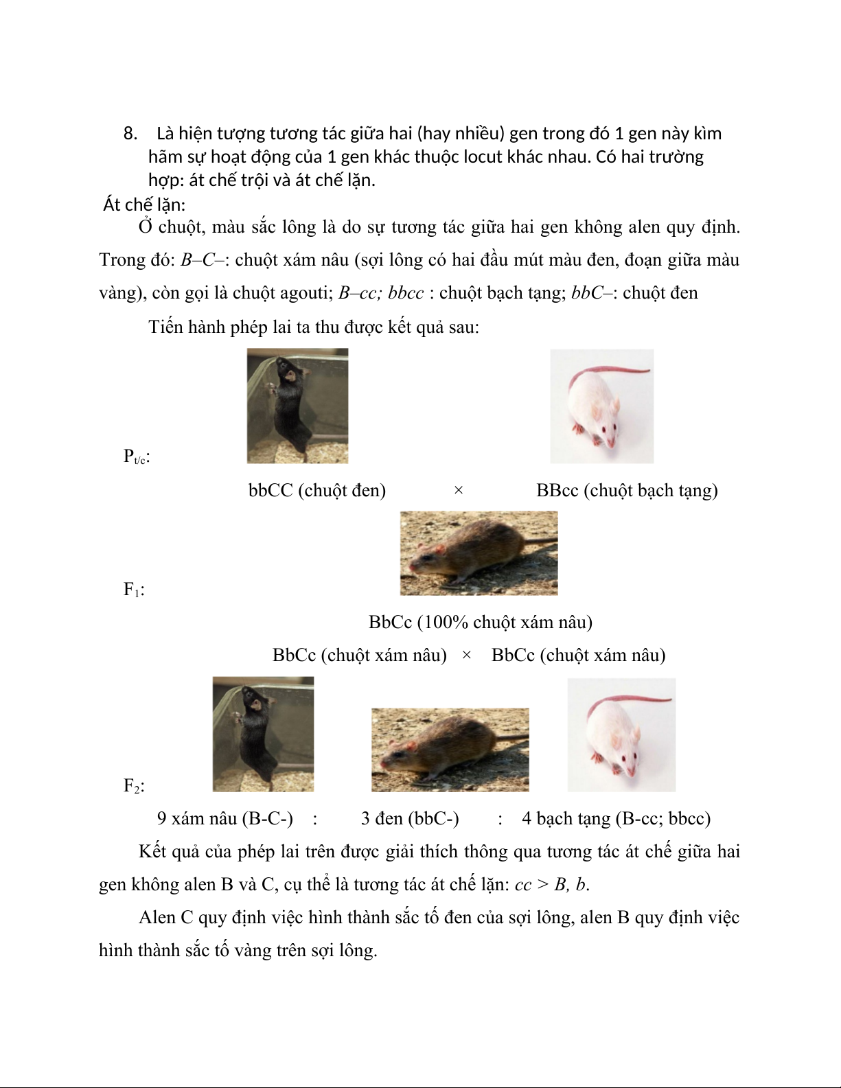 vàng), còn gọi là chuột agouti; B–cc; bbcc : chuột bạch tạng; : chuột đen bbC–