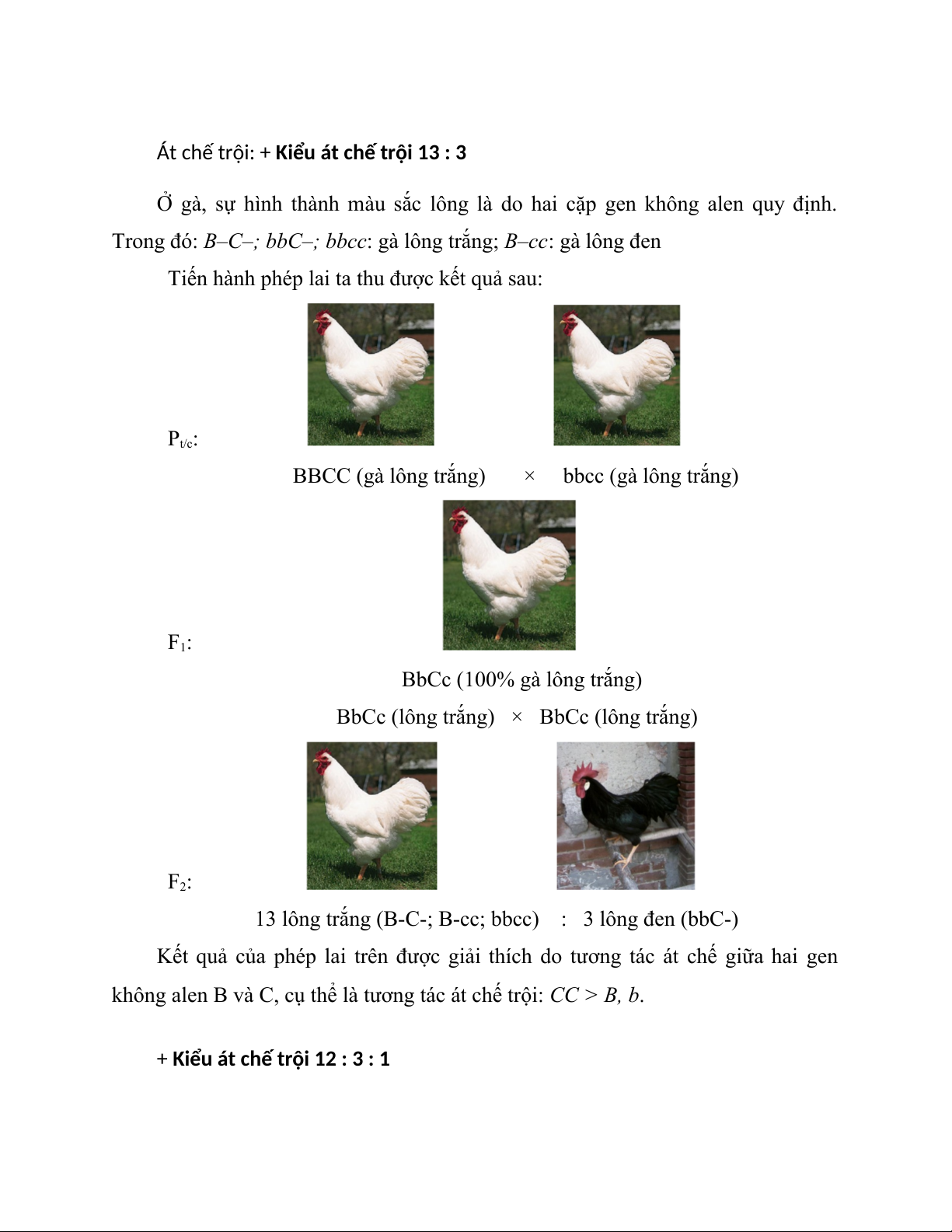 Trong đó: B–C–; bbC–; bbcc: gà lông trắng; B–cc: gà lông đen