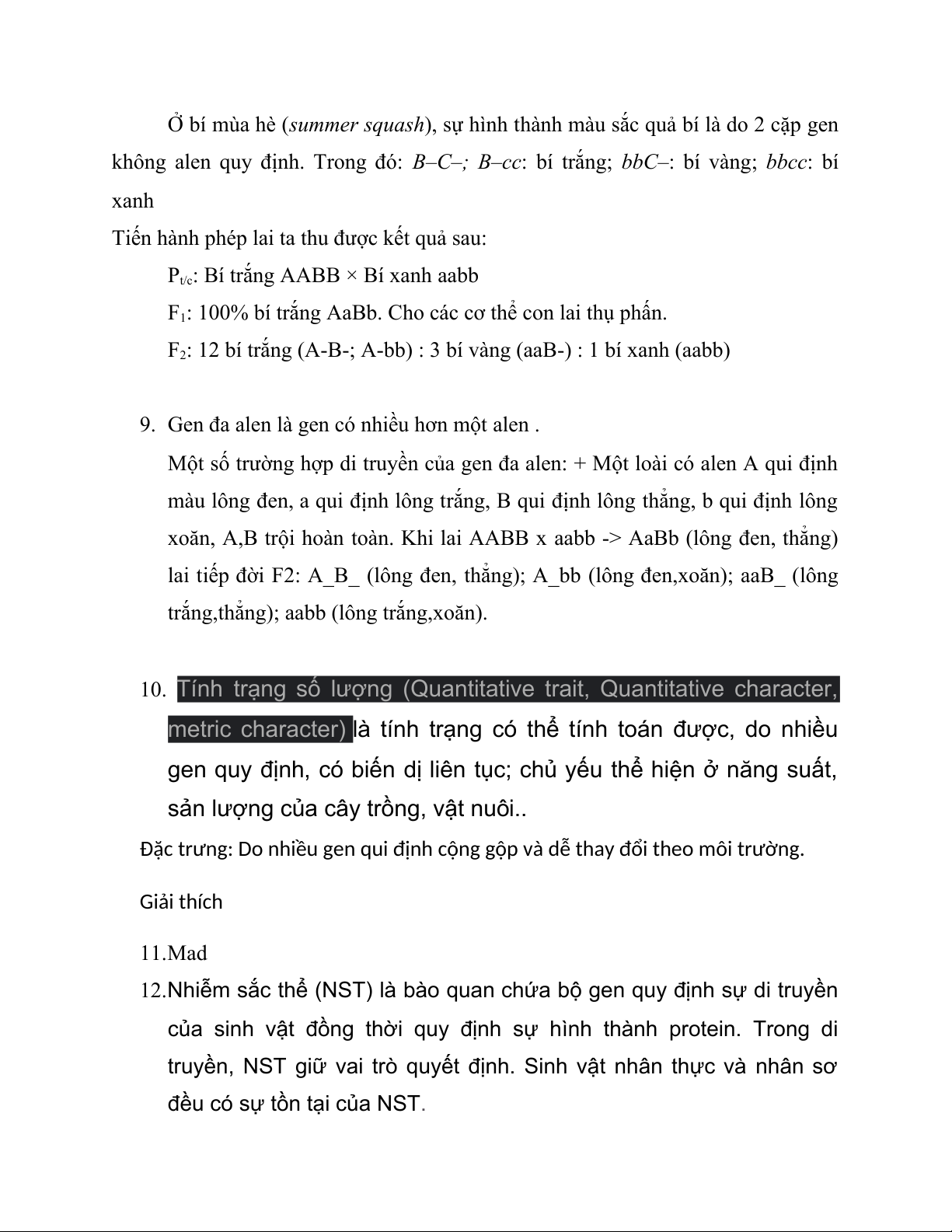 8. Là hiện tượng tương tác giữa hai (hay nhiều) gen trong đó 1 gen này kìm