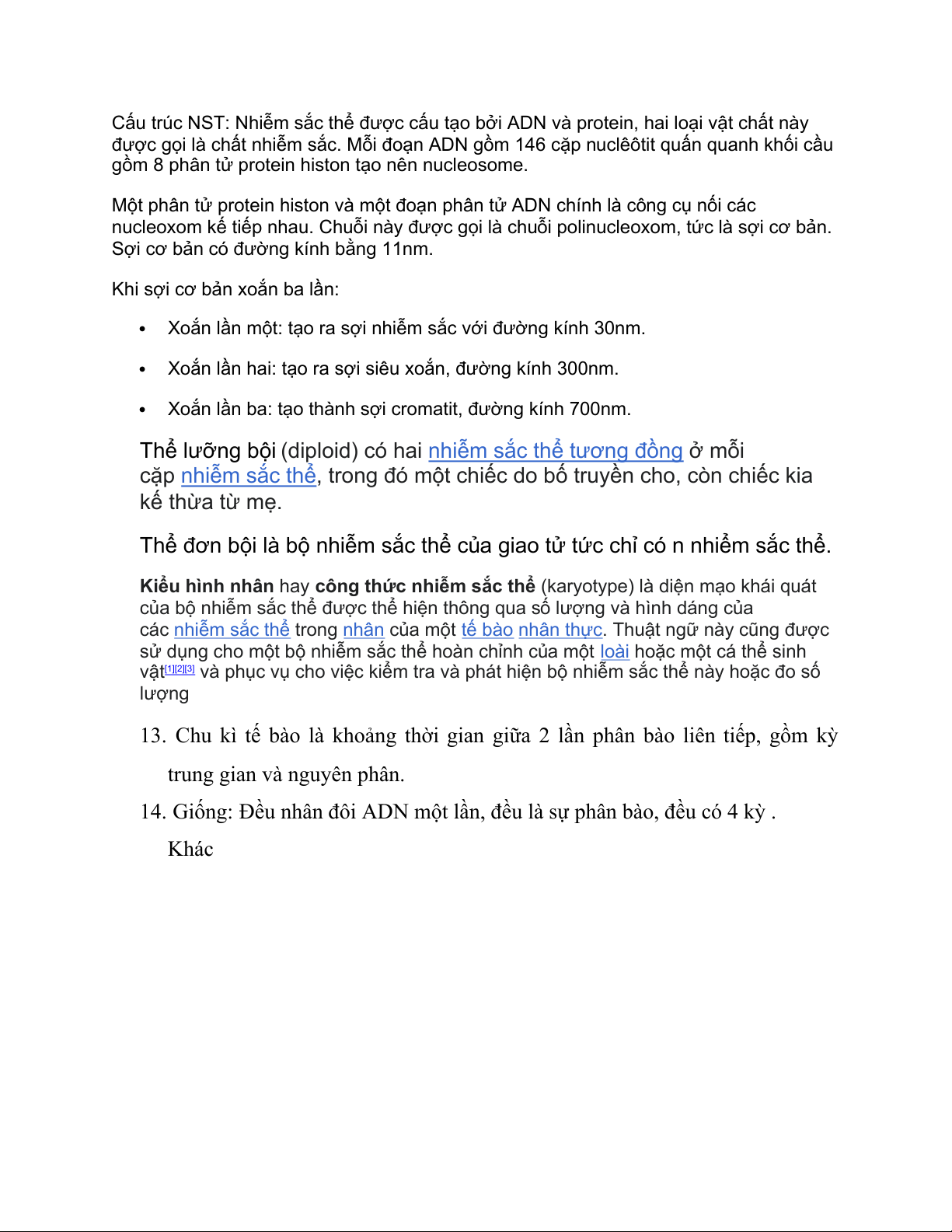 13. Chu kì tế bào là khoảng thời gian giữa 2 lần phân bào liên tiếp, gồm kỳ trung gian và nguyên phân.