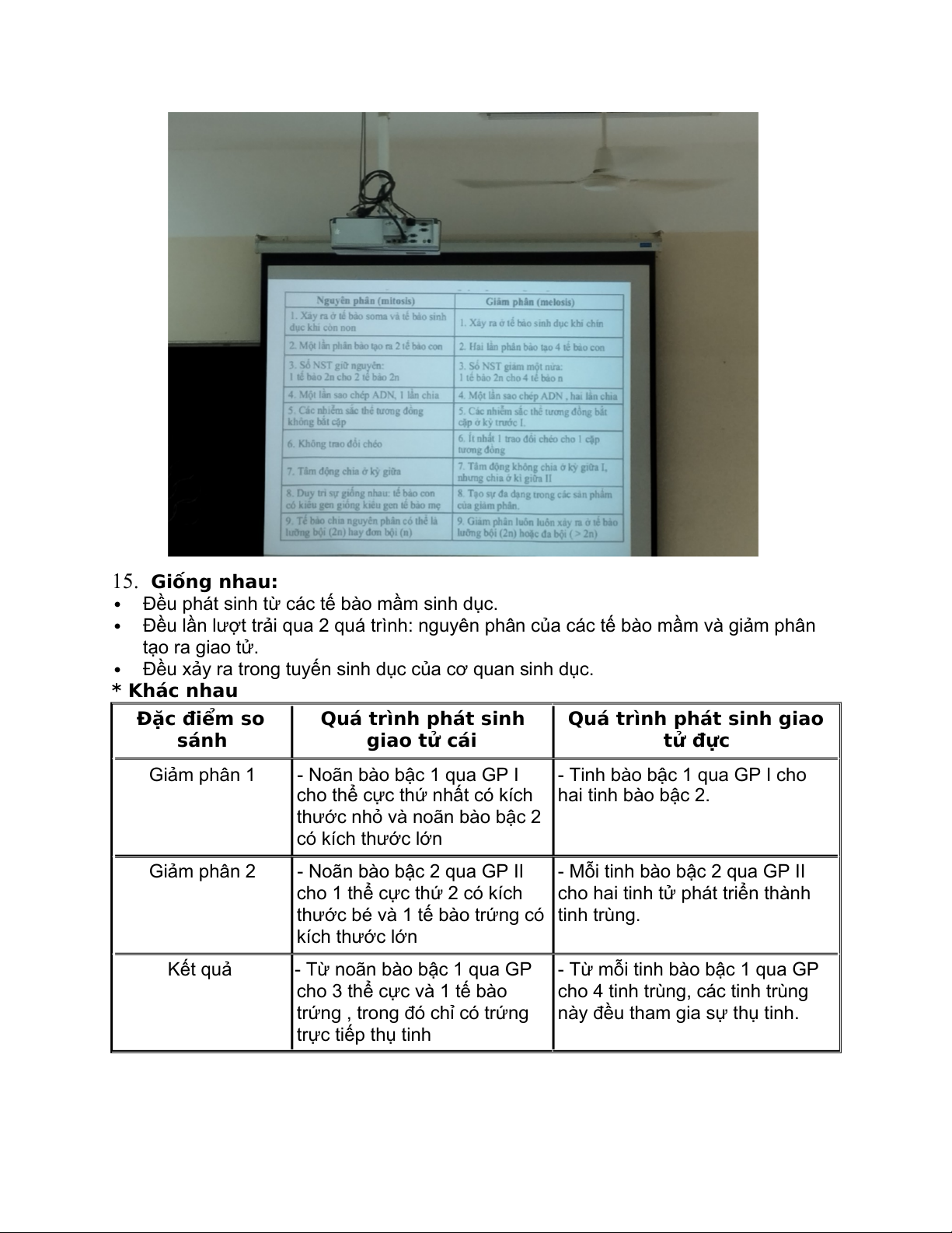 14. Giống: Đều nhân đôi ADN một lần, đều là sự phân bào, đều có 4 kỳ . Khác 15. Giống nhau: