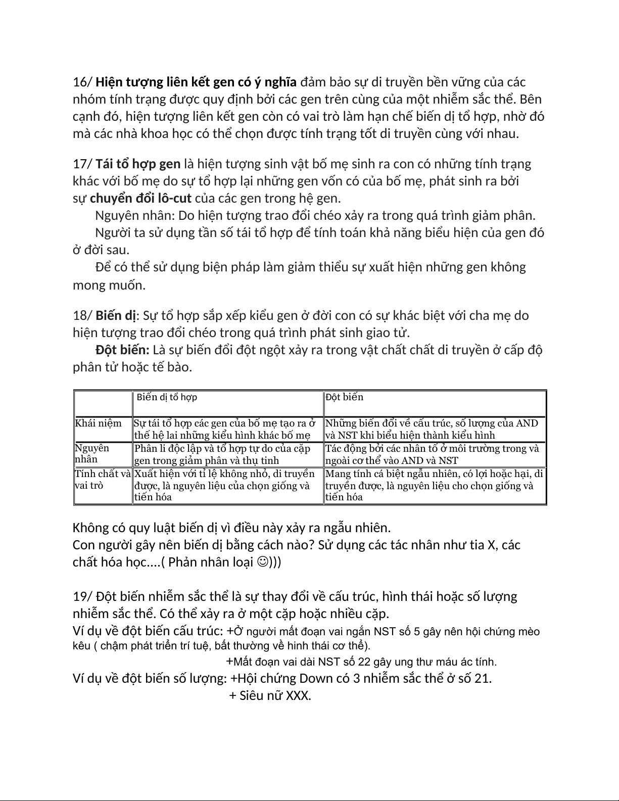 17/ Tái tổ hợp gen là hiện tượng sinh vật bố mẹ sinh ra con có những tính trạng
