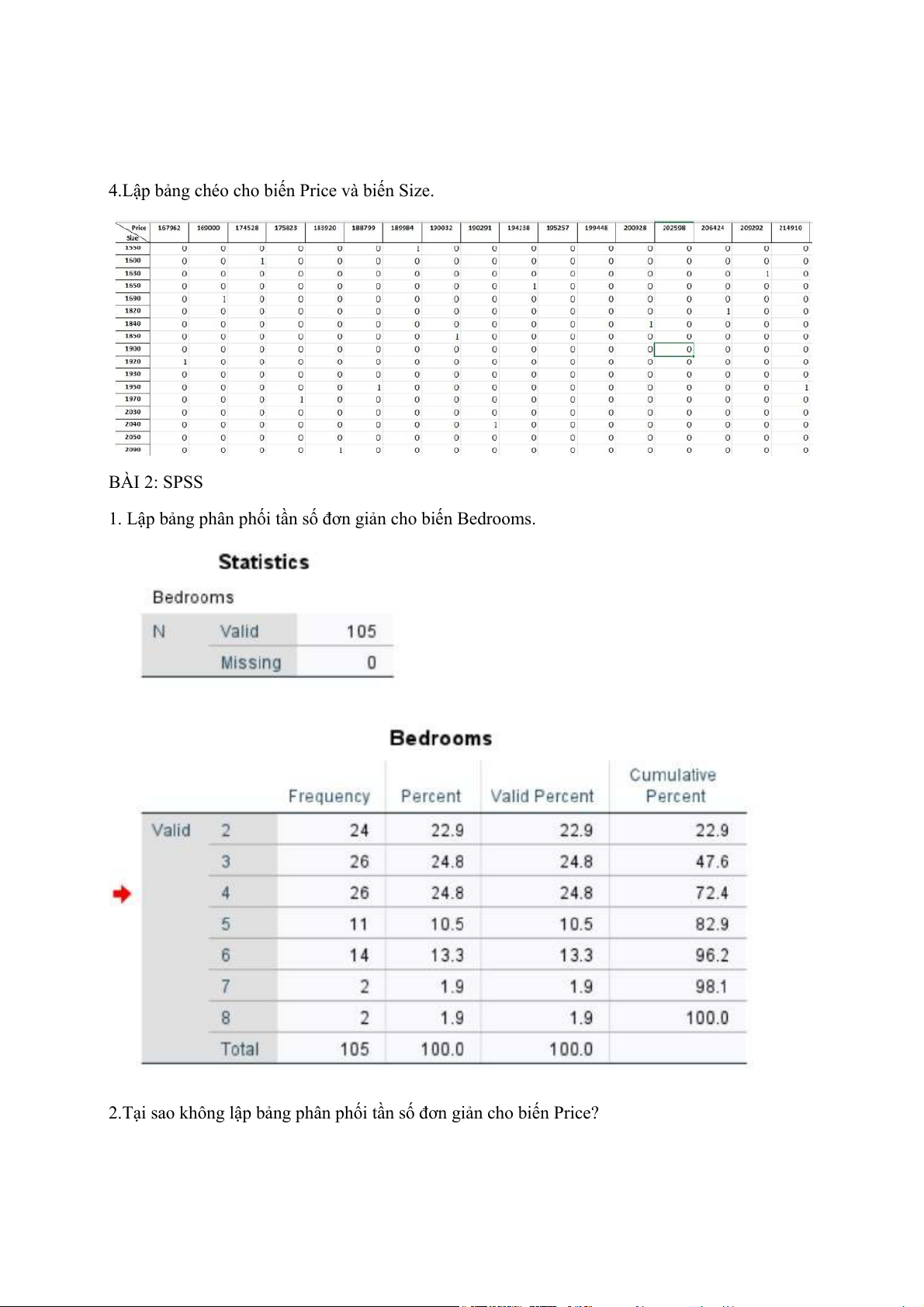 4.Lập bảng chéo cho biến Price và biến Size. BÀI 2: SPSS