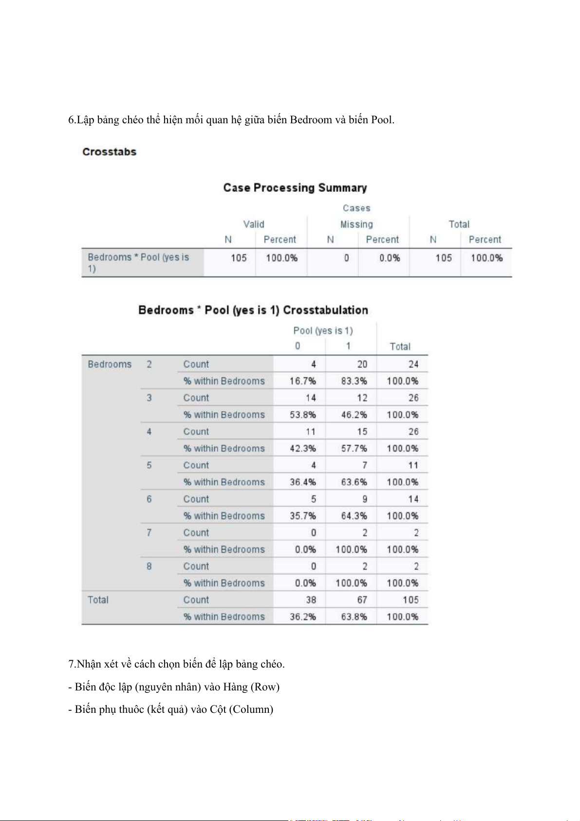 7.Nhận xét về cách chọn biến để lập bảng chéo.