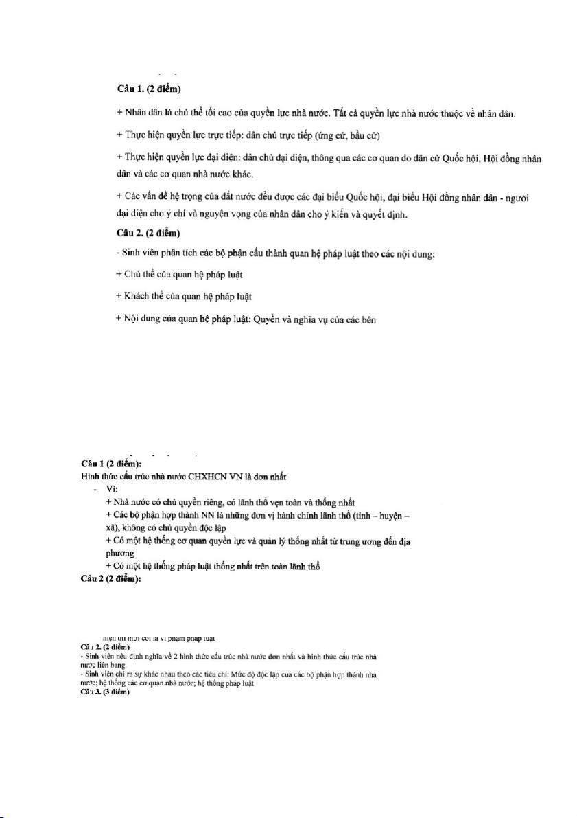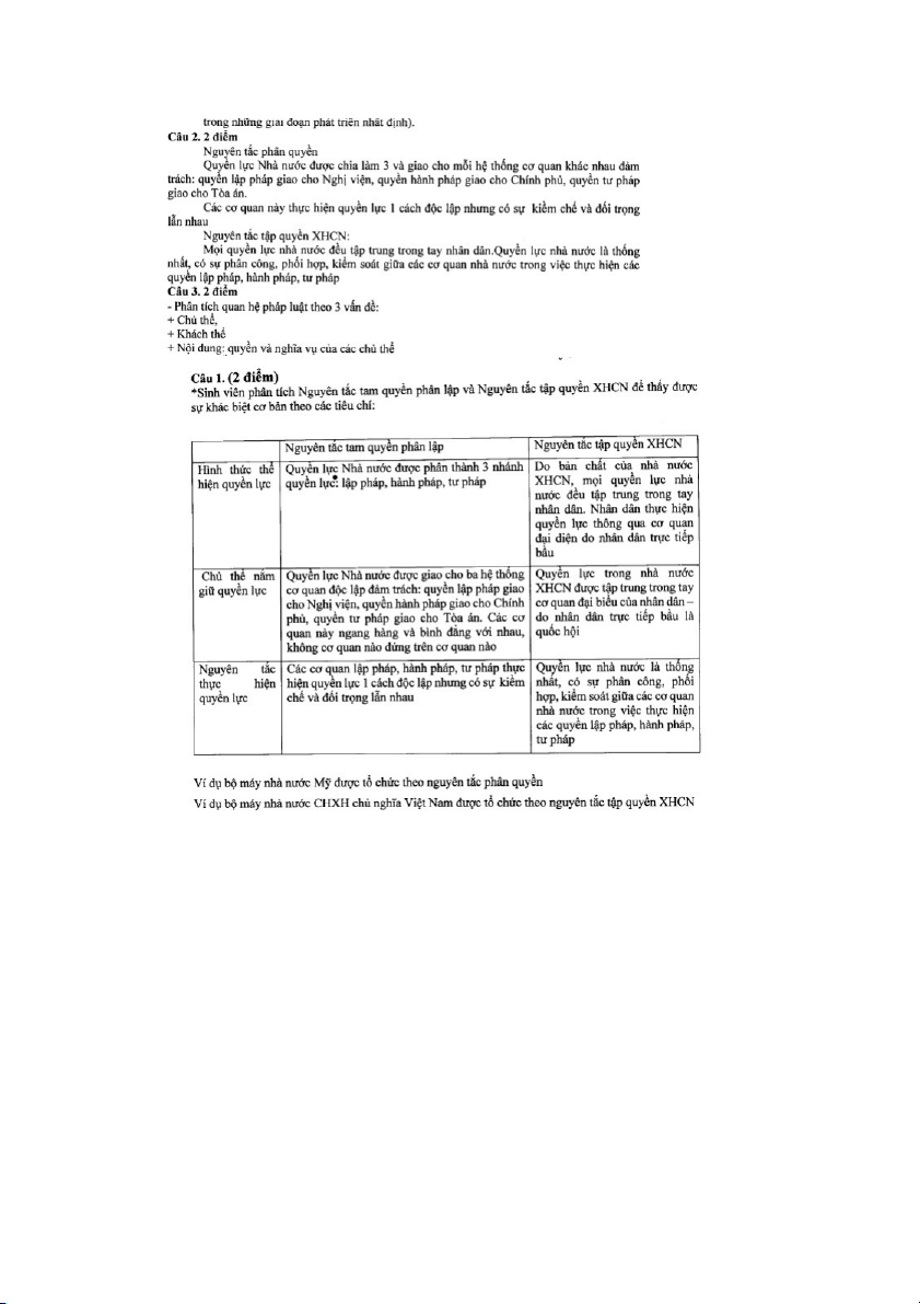 Câu 2: Chỉ ra sự khác biệt cơ bản giữa Nguyên tắc tập quyền XHCN và Nguyên tắc tập quyền phong kiến?
