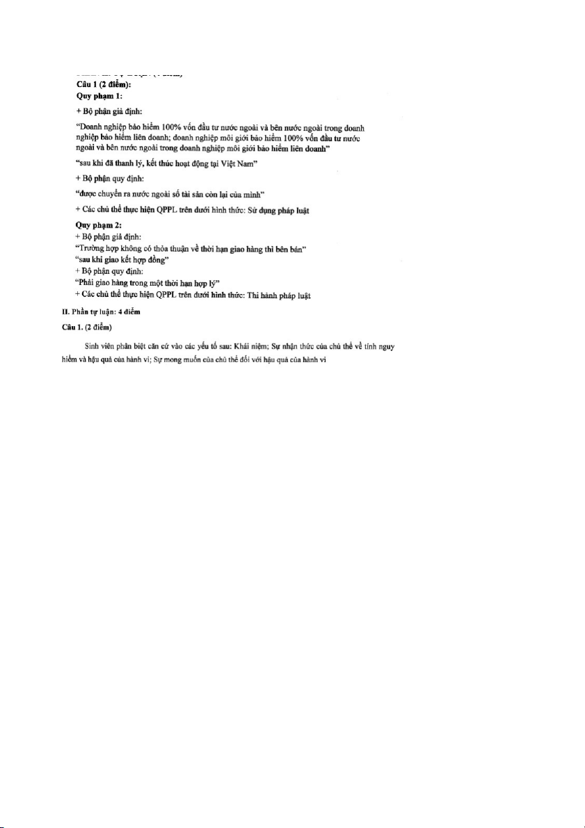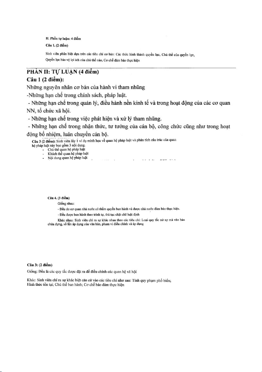 Câu 4: 4 yếu tố cấu thành vi phạm: -Chủ thể -Khách thể