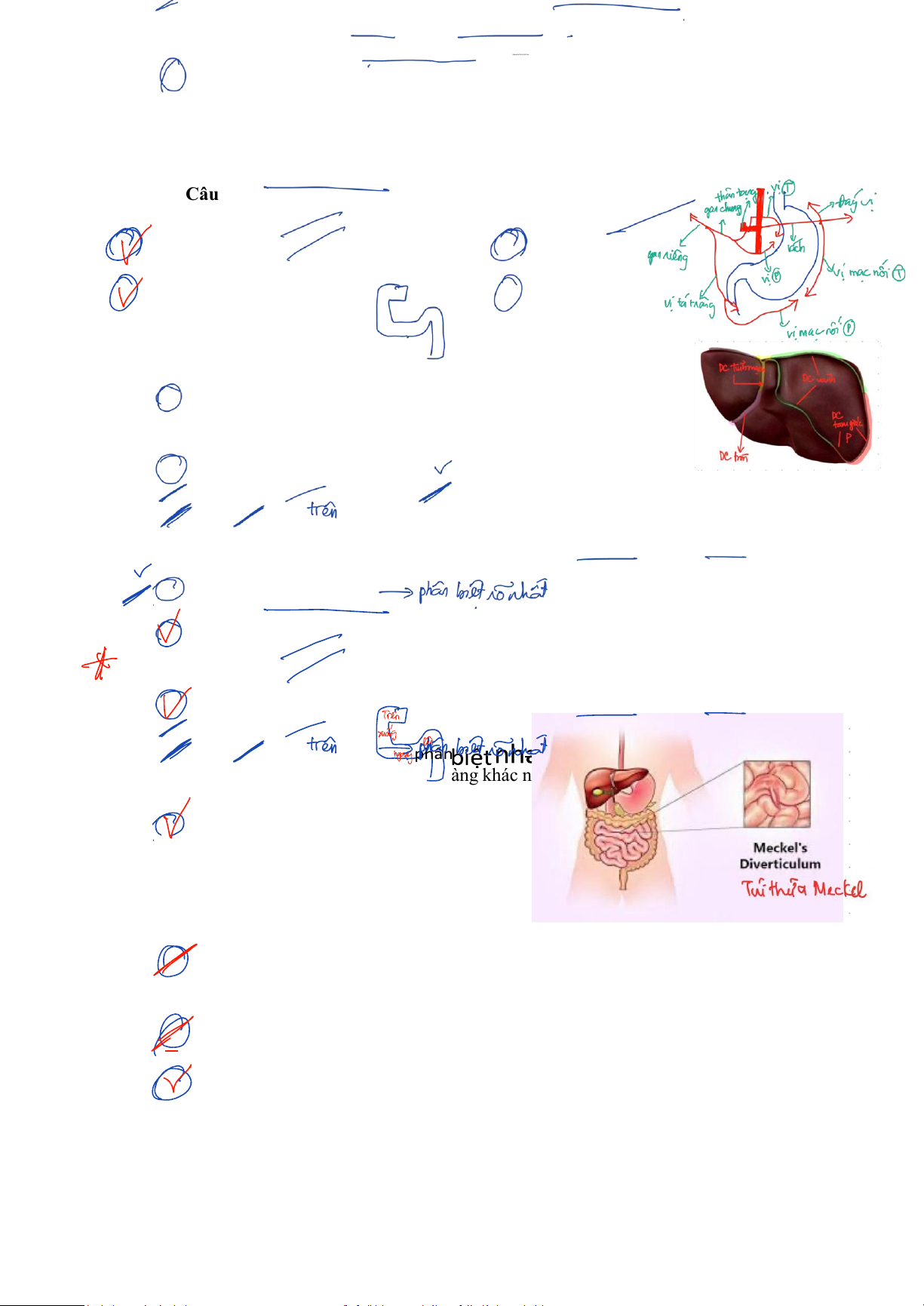 Câu 64: Phân biệt hỗng tràng và hồi tràng, người ta dựa vào mấy tiêu chí ĐÚNG dưới đây: