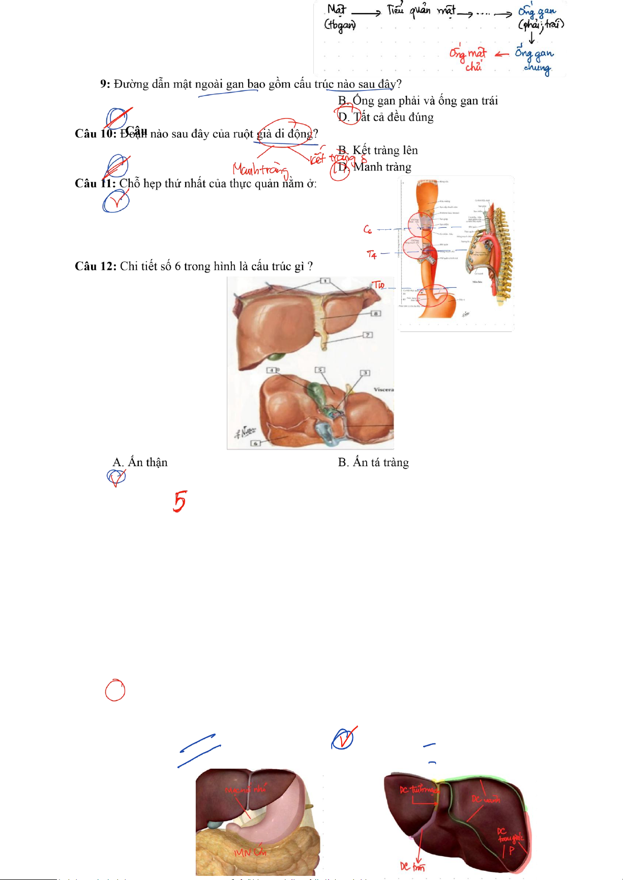 Câu 16: Chi tiết số 5 trong hình là cấu trúc gì ? lOMoAR cPSD| 47207194 Câu A. Nhú tá lớn B. Lỗ hồi - manh tràng C. Ống mật chủ D. Ống tuy.