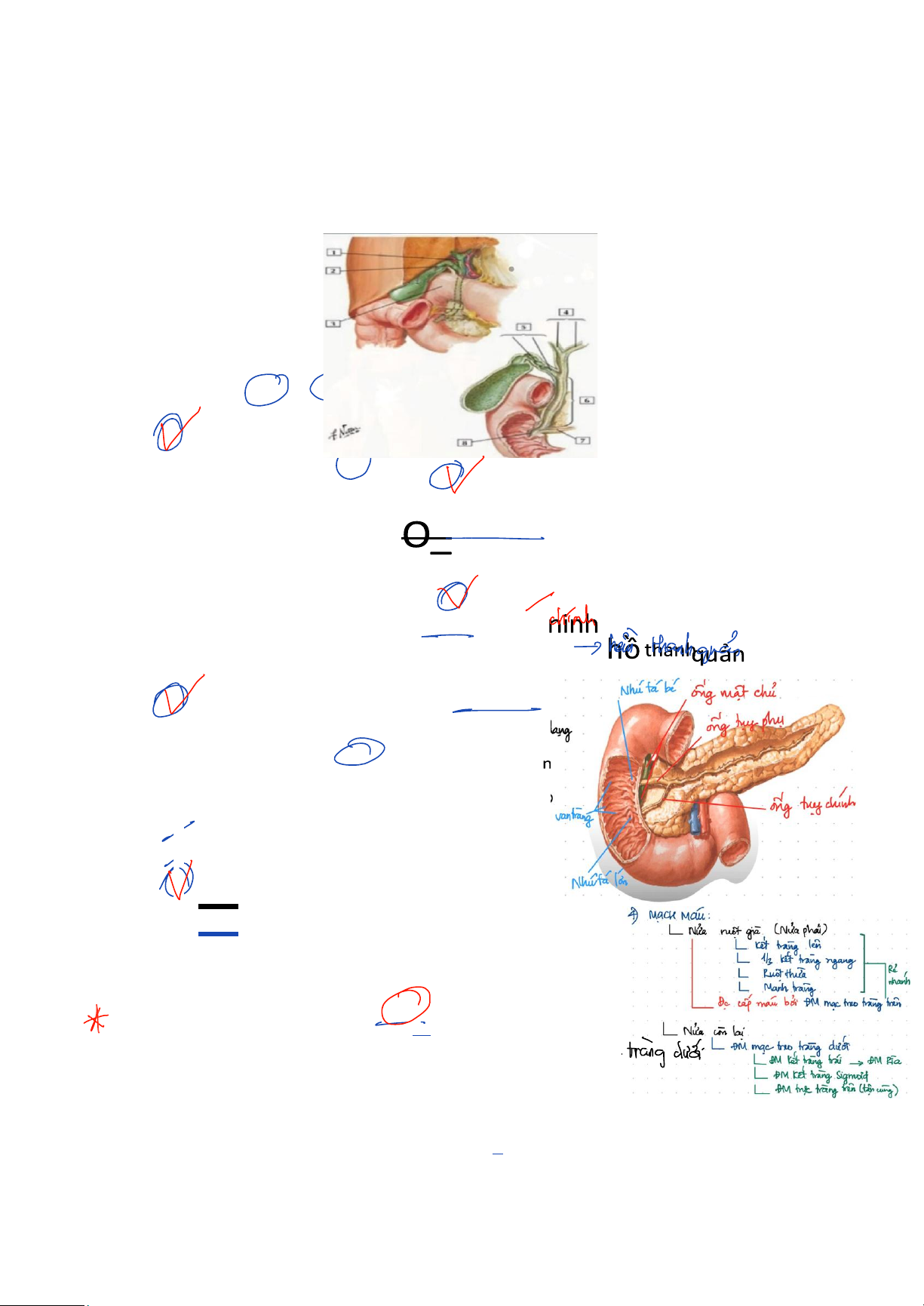 C. Ống túi mật và túi mật A. Kết tràng xuống C. Trực tràng