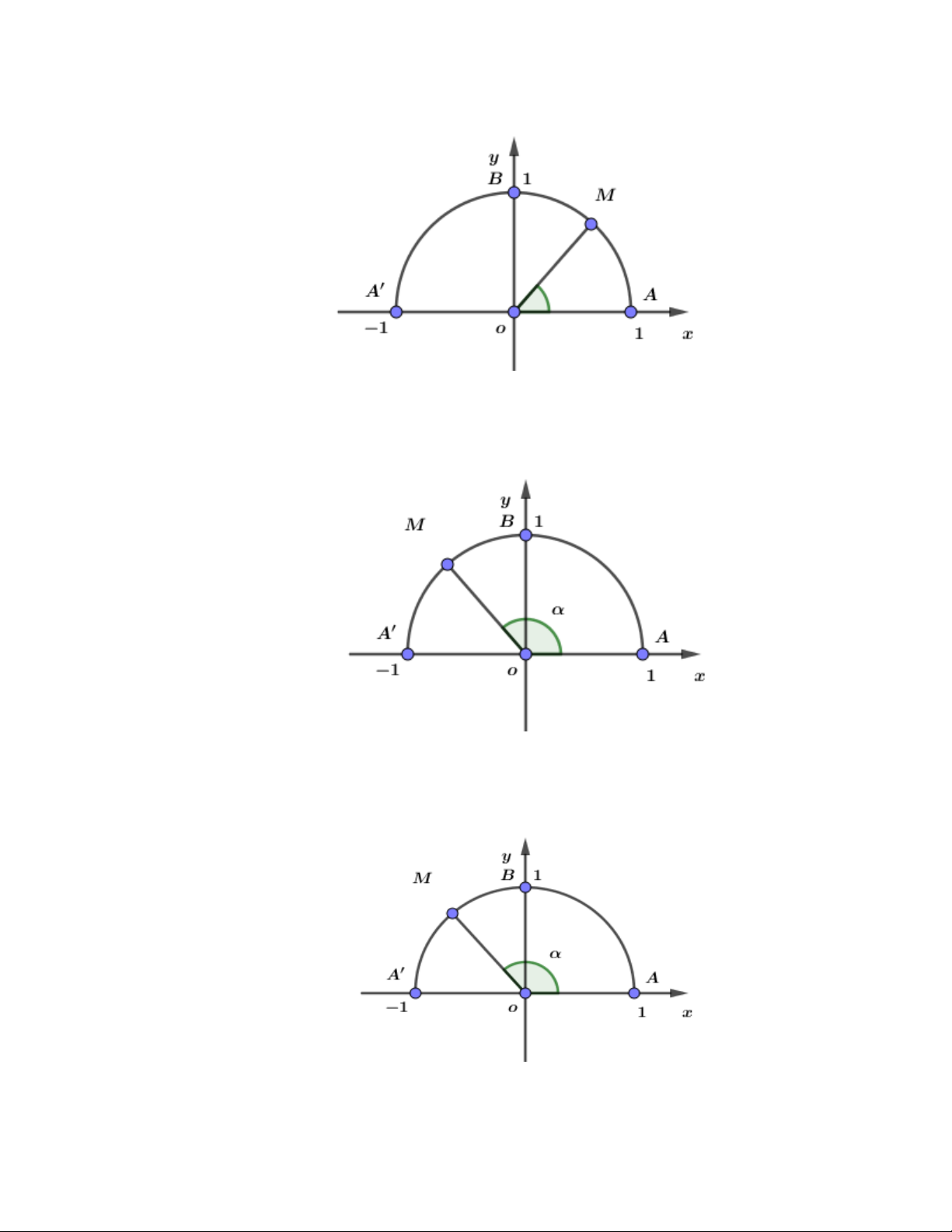 Trên nửa đường tròn đơn vị cho điểm M sao cho AOM = như hình bên. Tìm mệnh đề đúng.