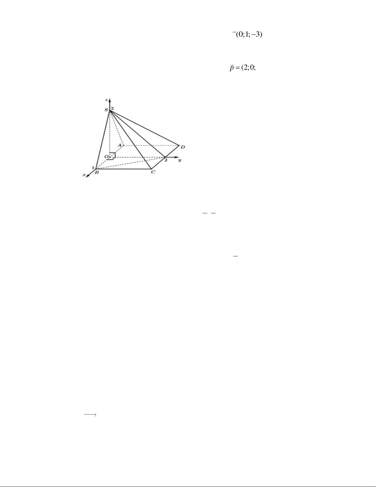 AB, SO = 2 và SO ⊥ ( ABCD) . Bằng cách gắn hệ trục toạ độ Oxyz như hình vẽ.