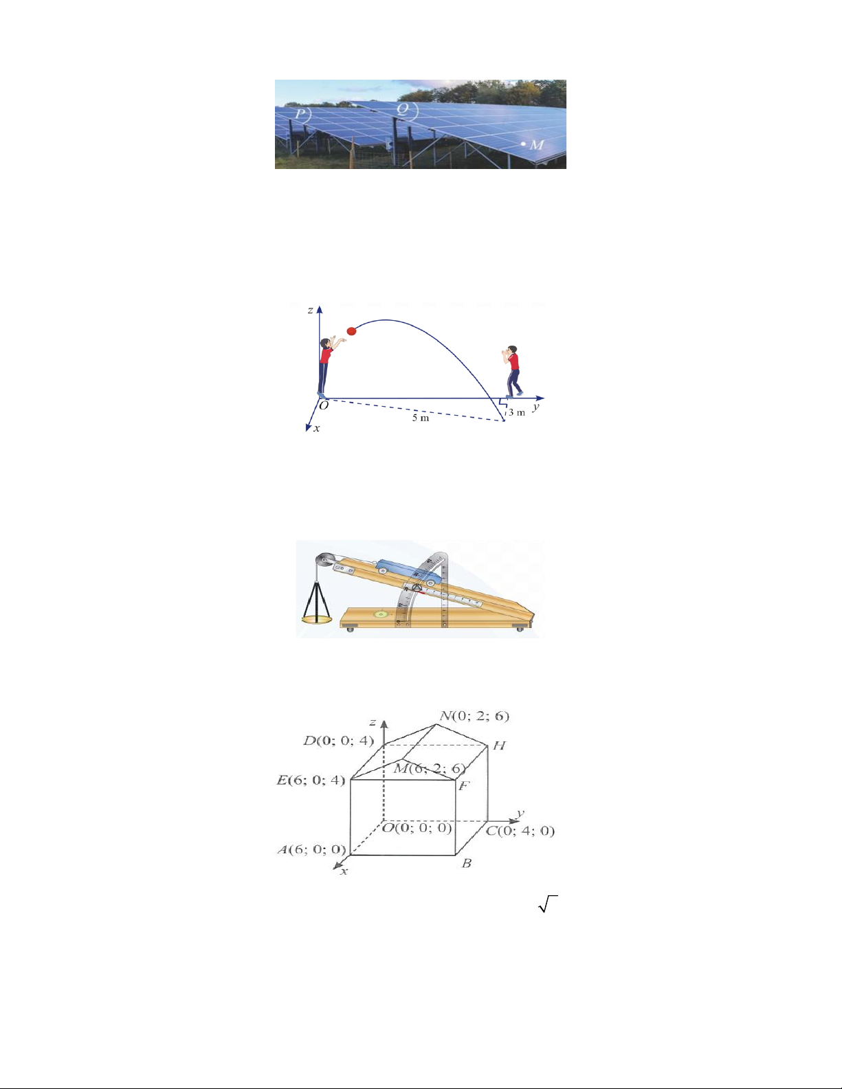 Câu 9: Trên bản thiết kế đồ hoạ 3D của một cánh đồng điện mặt trời trong không gian Oxyz ,