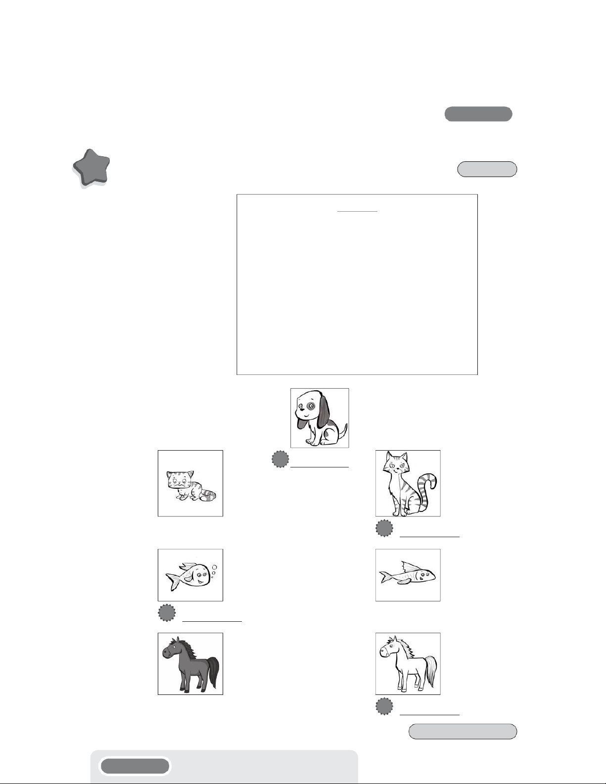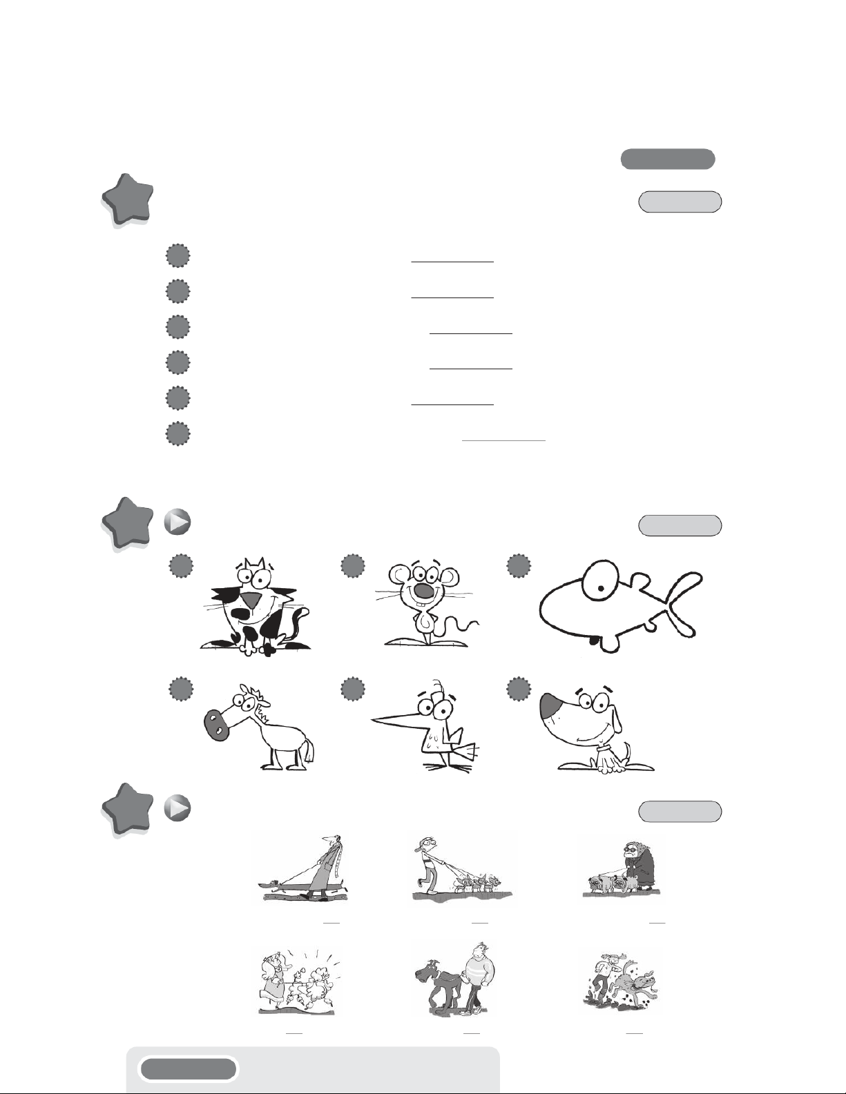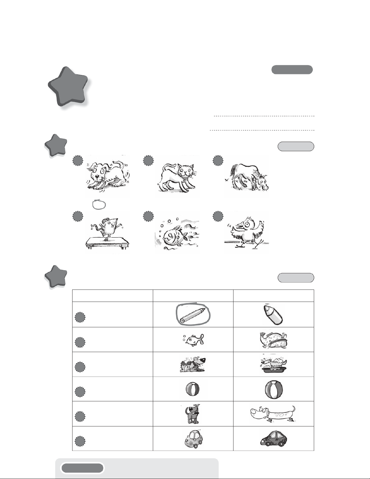 1. Nhìn và khoanh tròncle. Có một eVí dụ. Đánh dấu ...... /5 1 2 3 chó / chim chó/mèo chuột / ngựa 4 5 6 mèo/chuột cá / ngựa chó / chim