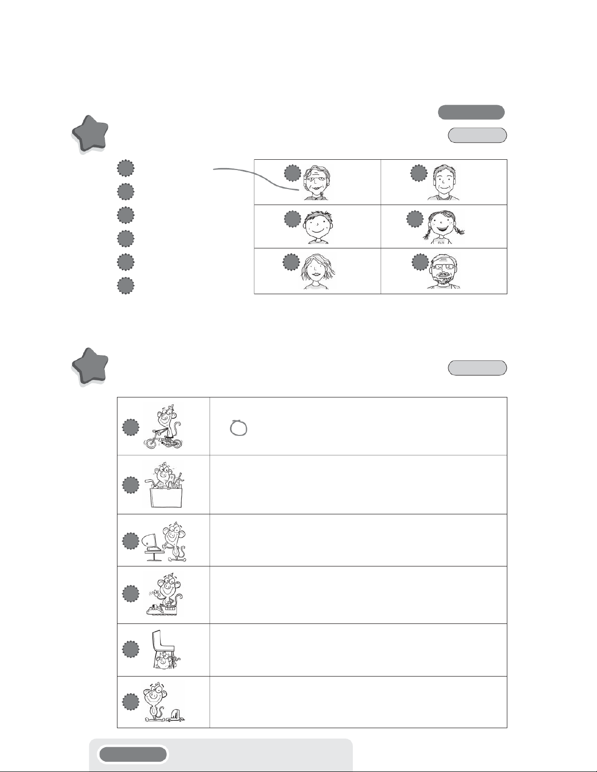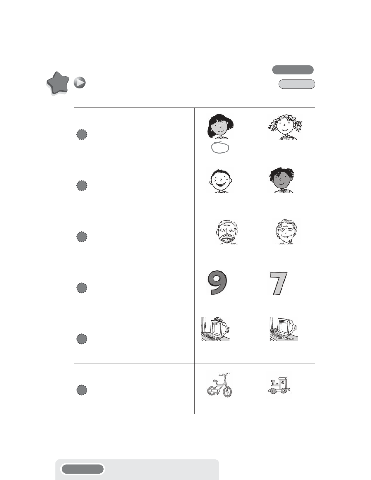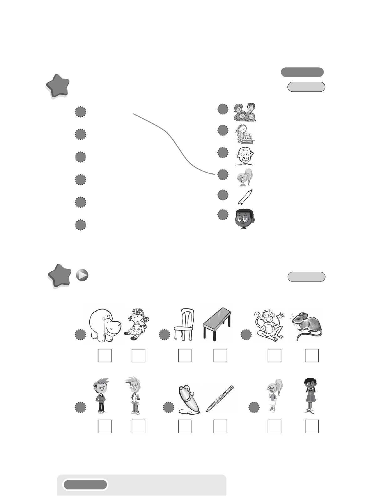 1. Nhìn và khoanh tròncle. Có một eVí dụ. Đánh dấu ...... /5 1 2 3 chó / chim chó/mèo chuột / ngựa 4 5 6 mèo/chuột cá / ngựa chó / chim