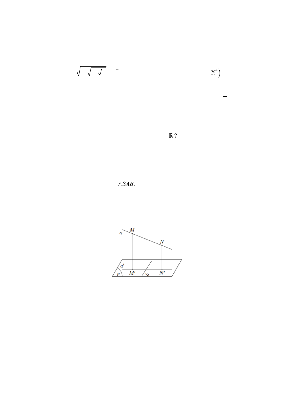 Câu 7. Cho đường thẳng a và mặt phẳng (P) không vuông góc với nhau. Gọi a ' là hình chiếu vuông góc