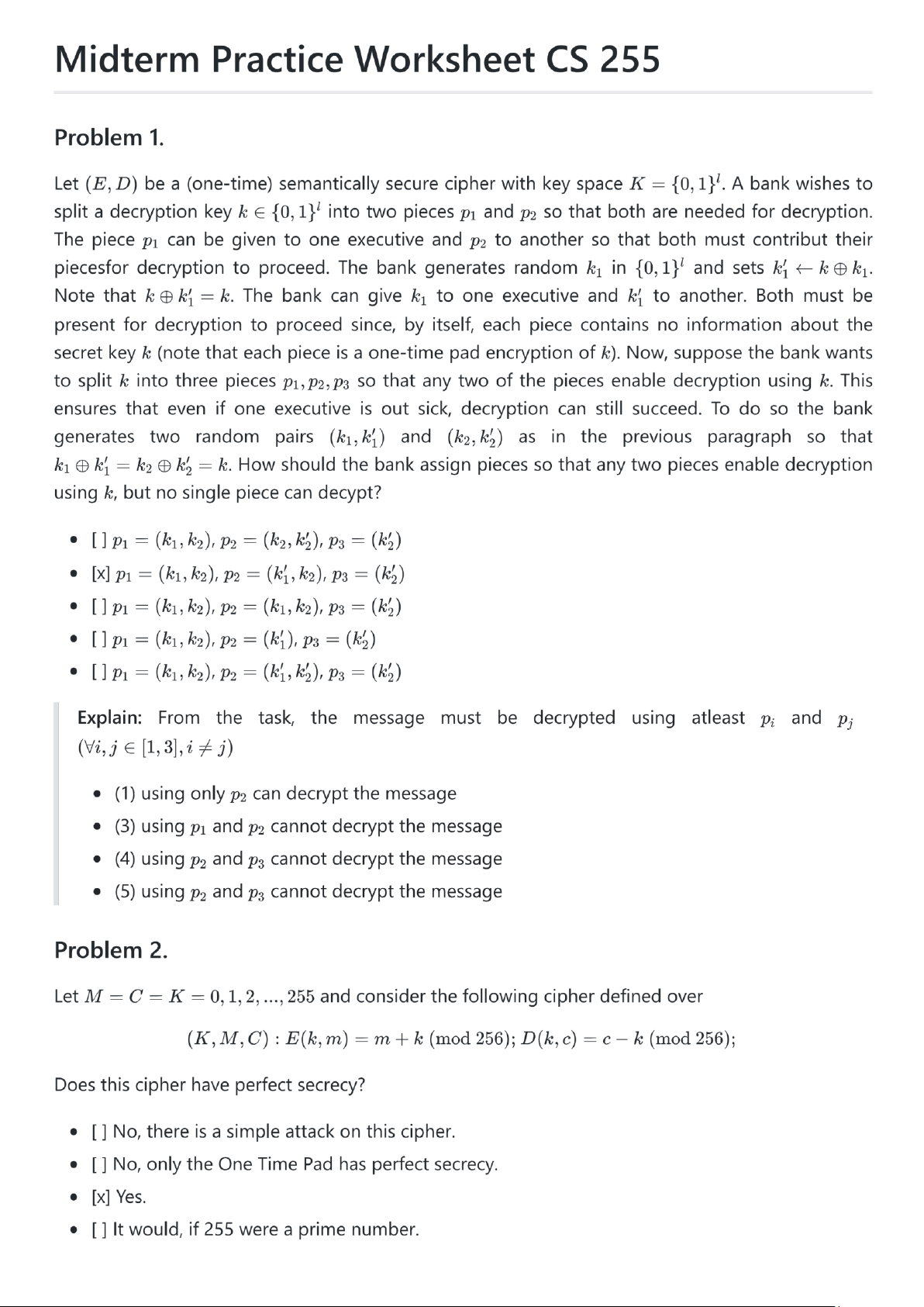 Ôn tập giữa kì: Bài tập về mật mã và bảo mật môn Mật mã ứng dụng | Trường Đại học Bách Khoa Hà Nội
