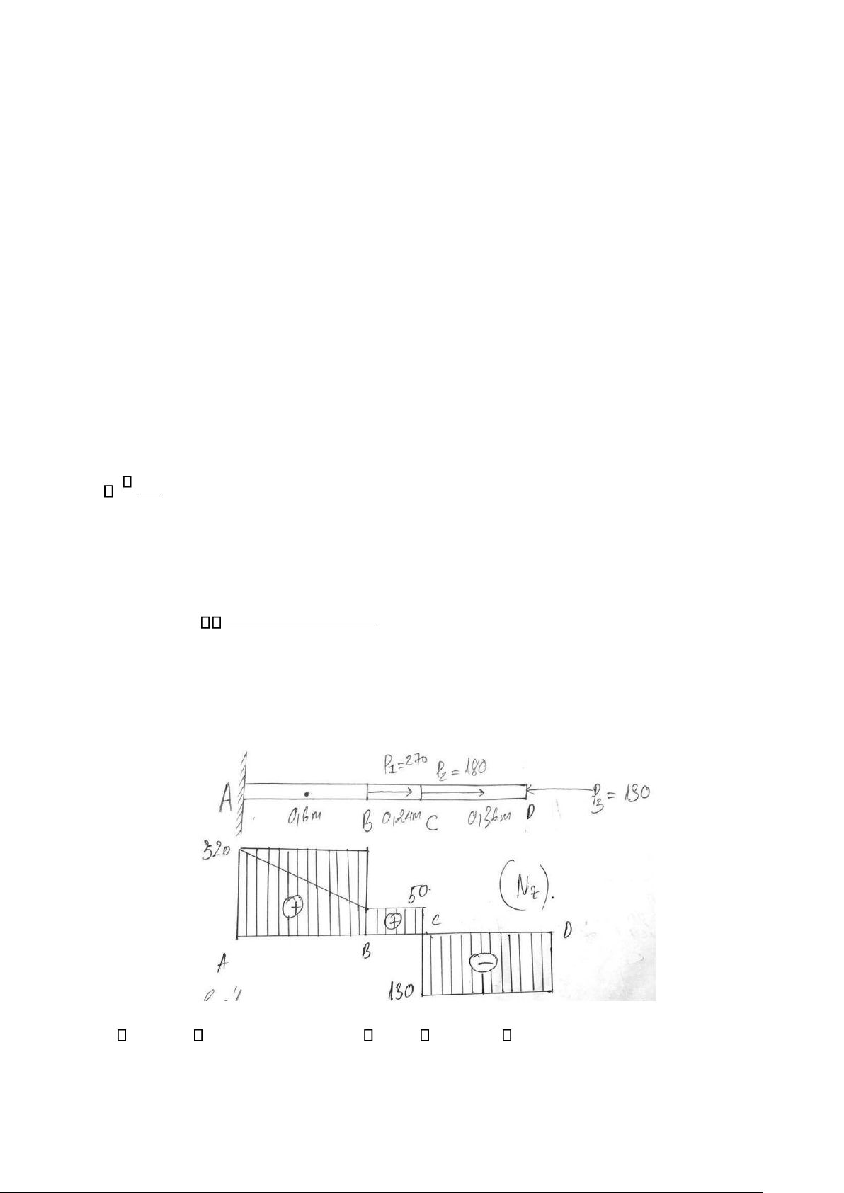 (1GPa 109Pa 109N m/ 2 106kN m/ 2) lOMoAR cPSD| 59671932 (*) Tính ứng suất: - 21,33.104 kN m/ 2 AB NZAB 320 4 F 15.10 3,3.104 kN m/ 2 - BC NZBC 50 4 F 15.10 4 2 NZCD 130 - CD 4 8,67.10 kN m/ F 15.10