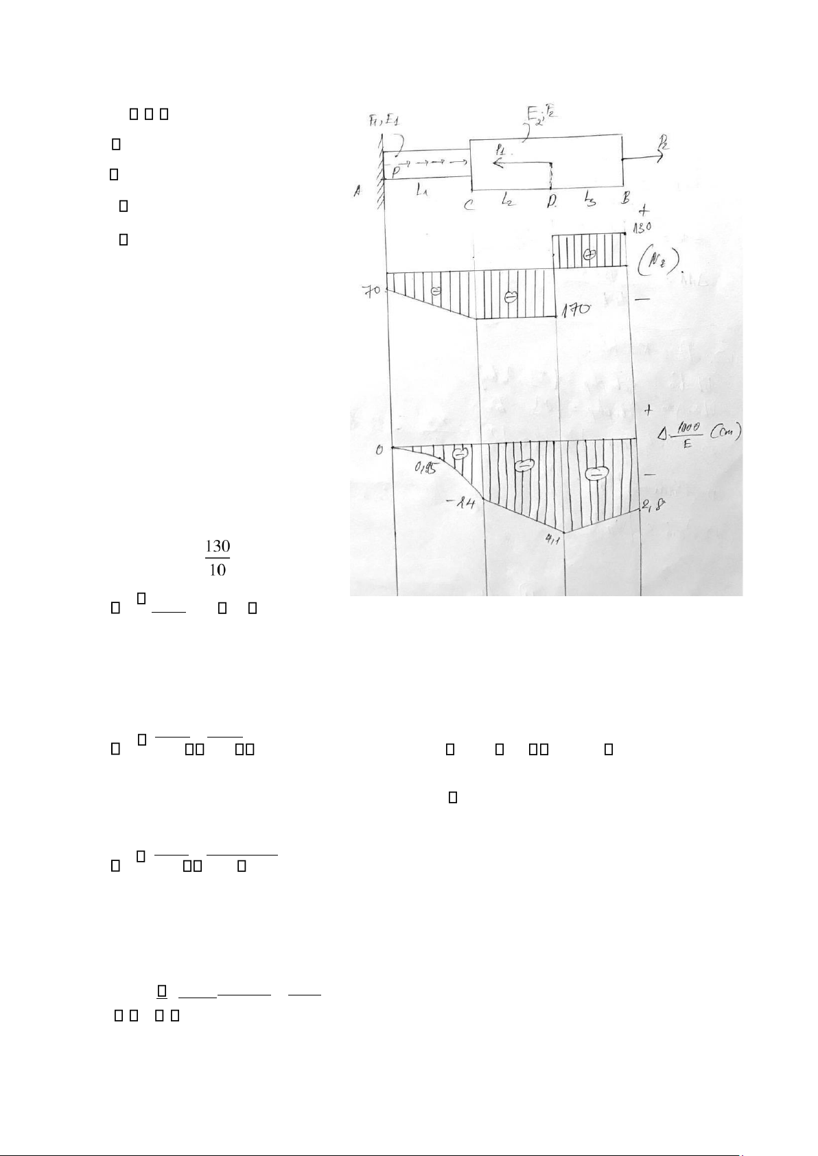 L L1 2 L3 1m E 200GPa P 100kN m/ P1 300kN P2 130kN Vẽ NZ; σ; Δ - BD NZBD 13kN cm/ 2 F2 l N - 170 DC NZDC 17kN cm/ 2 0 70Z NZ 100 70l F2 10 1 170 - AC NZAC 100l 70 (kN cm/ 2) F1 10 (*) Chuyển vị NZBD 130.100 1300