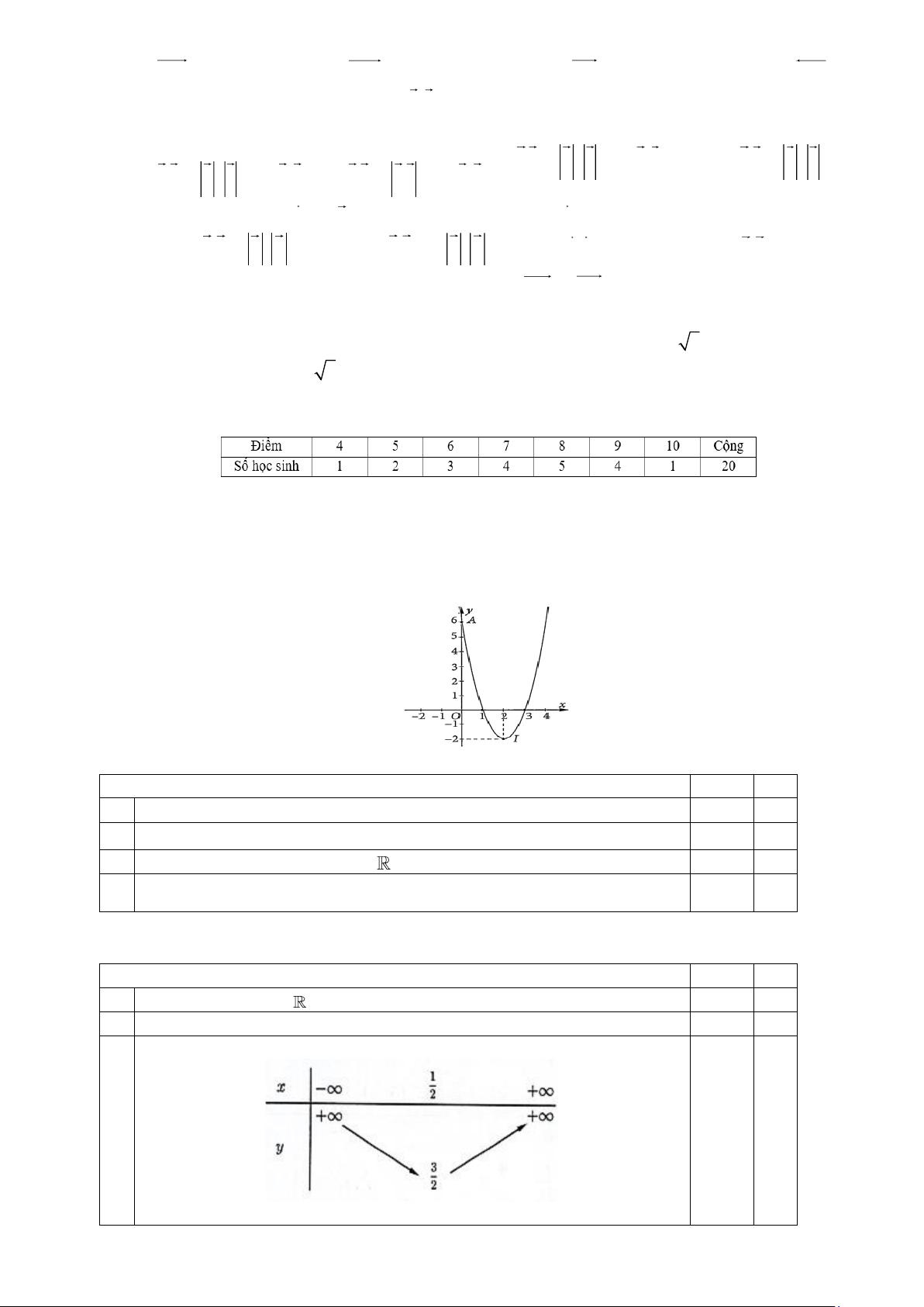 Câu 20: Cho bảng số liệu điểm bài kiểm tra môn toán của 20 học sinh.