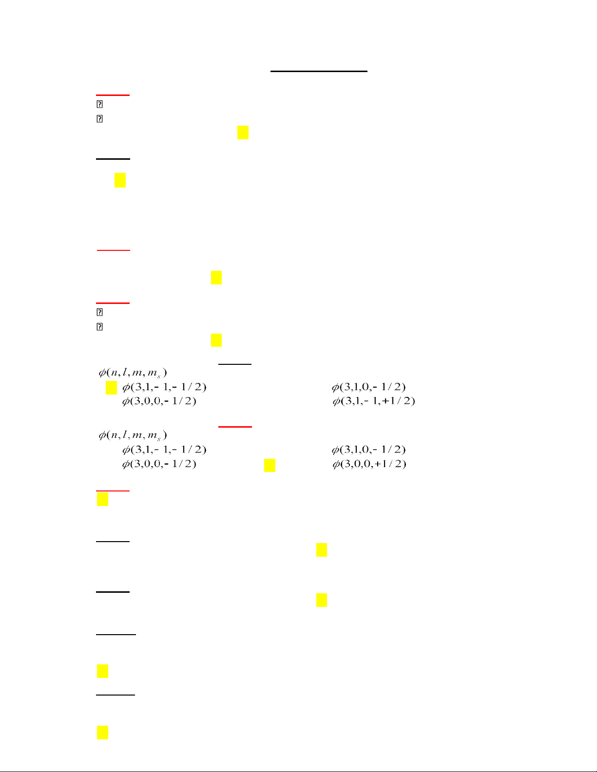 hàm sóng xác định electron cuối cùng đặc trưng cho nguyên tử Mg là; A. B. C . D. Câu 7: