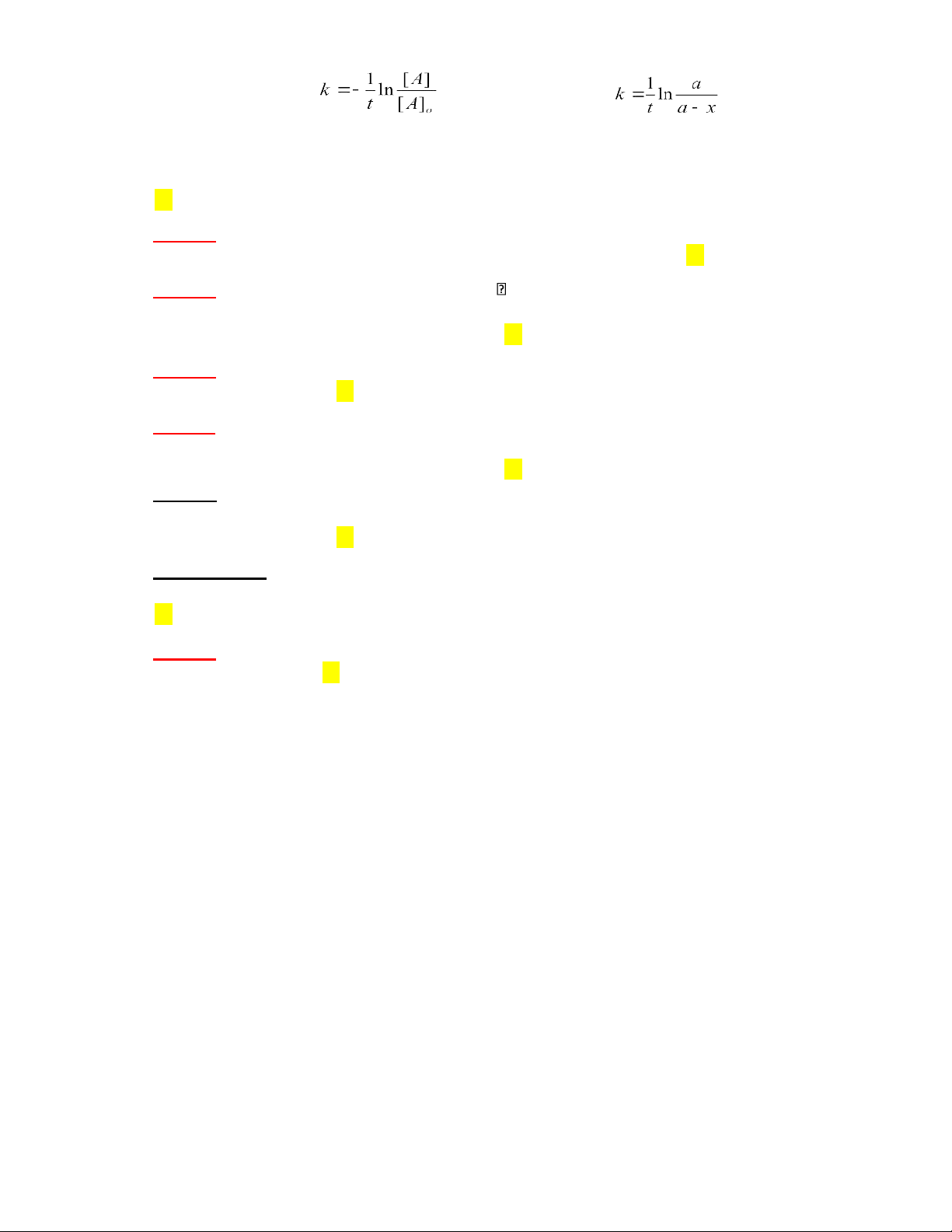ln[A] = -kt + ln[Ao] hoặc ln (a-x) = -kt + ln a lOMoAR cPSD| 46342985 Hoặc hoặc Với [A]o= a