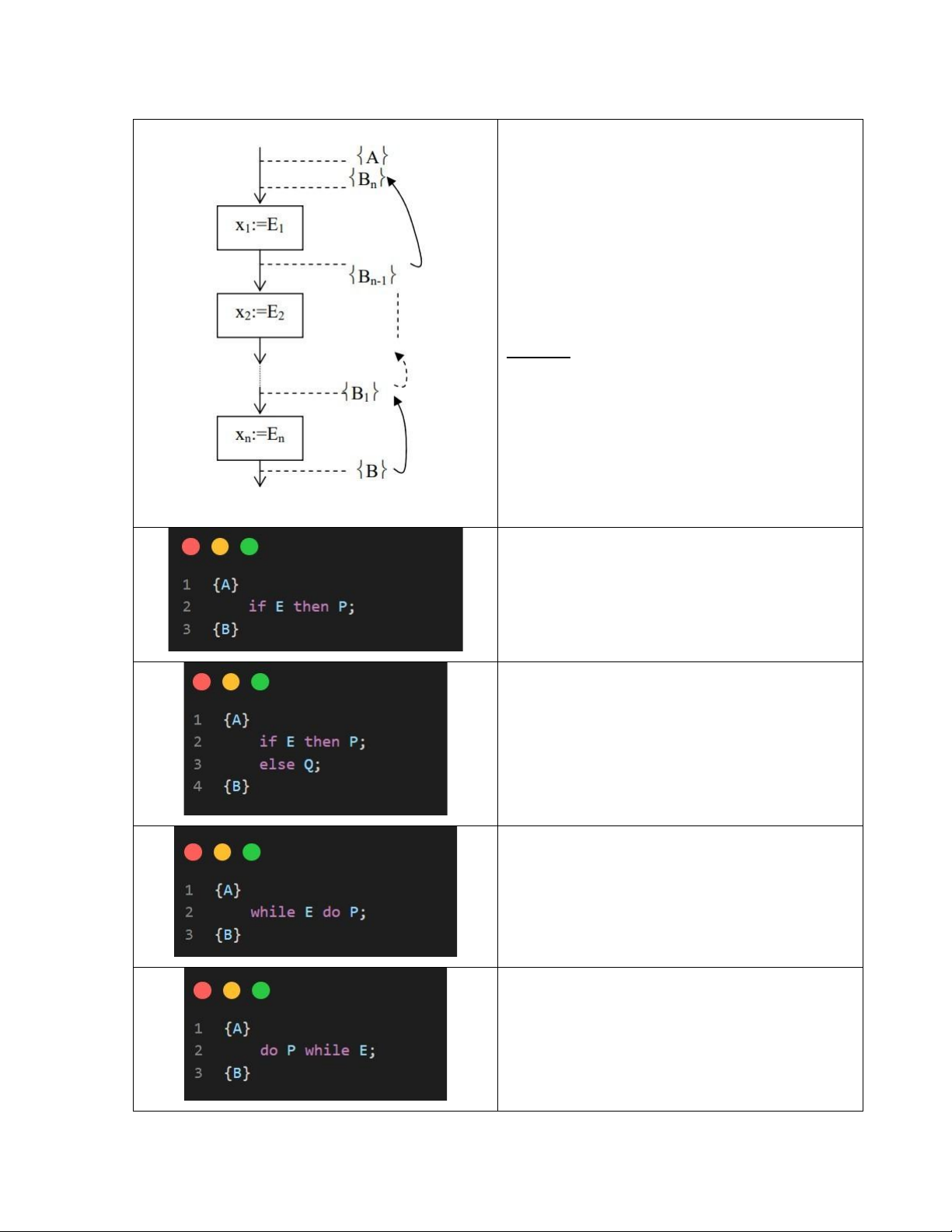 Do đó: {G, E3} y = F2; if E4 then P5 else P3; {G}