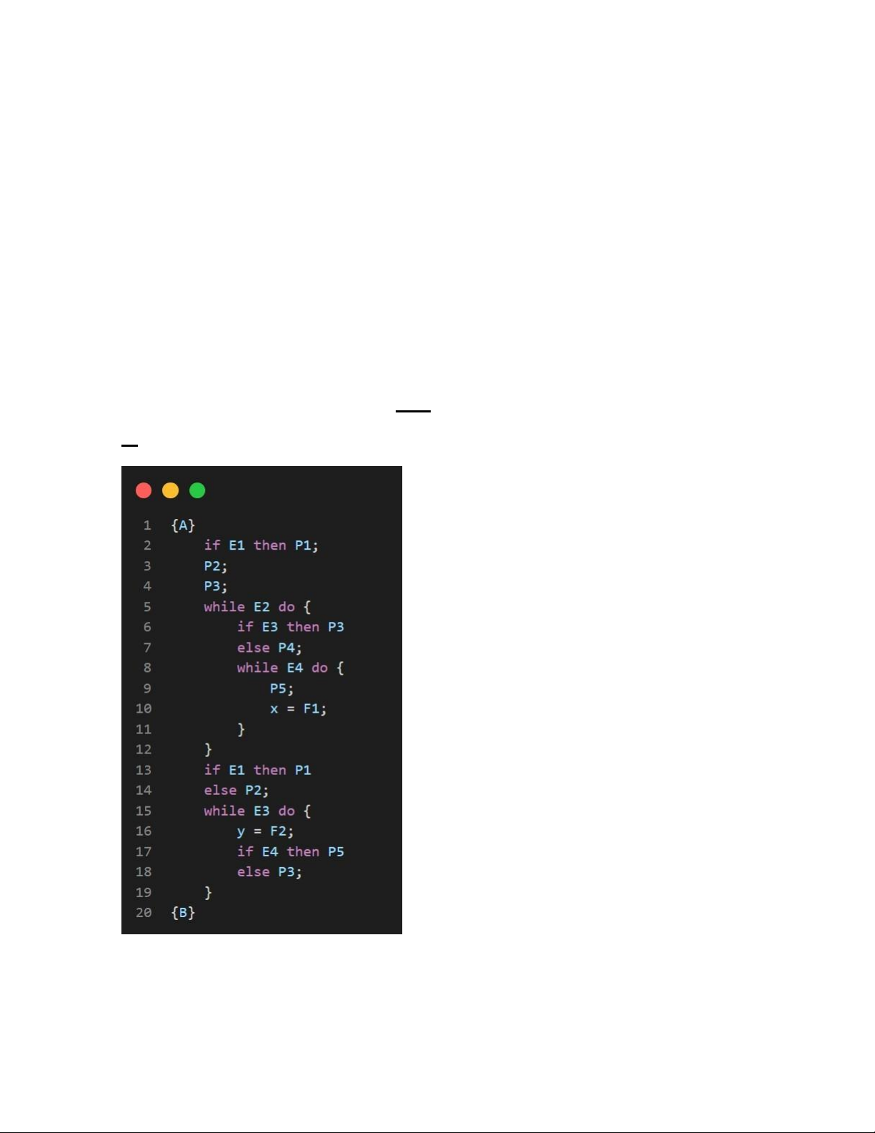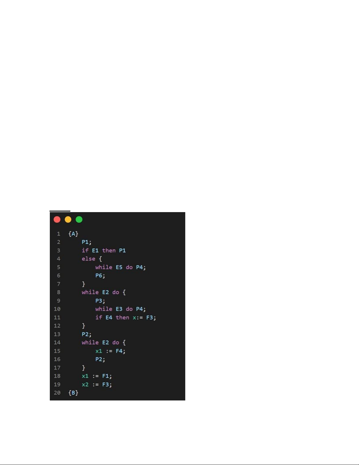 Bước 1: Ta có chương trình P như sau: P1; if E1 then P1 else P2; while E2 do P3; P2; x1:= F1; x2 := F3;