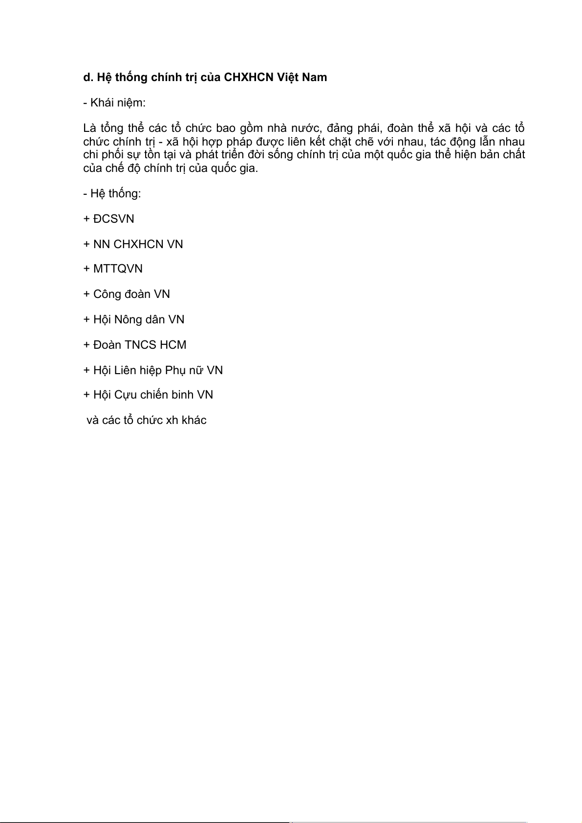 d. Hệ thống chính trị của CHXHCN Việt Nam - Khái niệm: