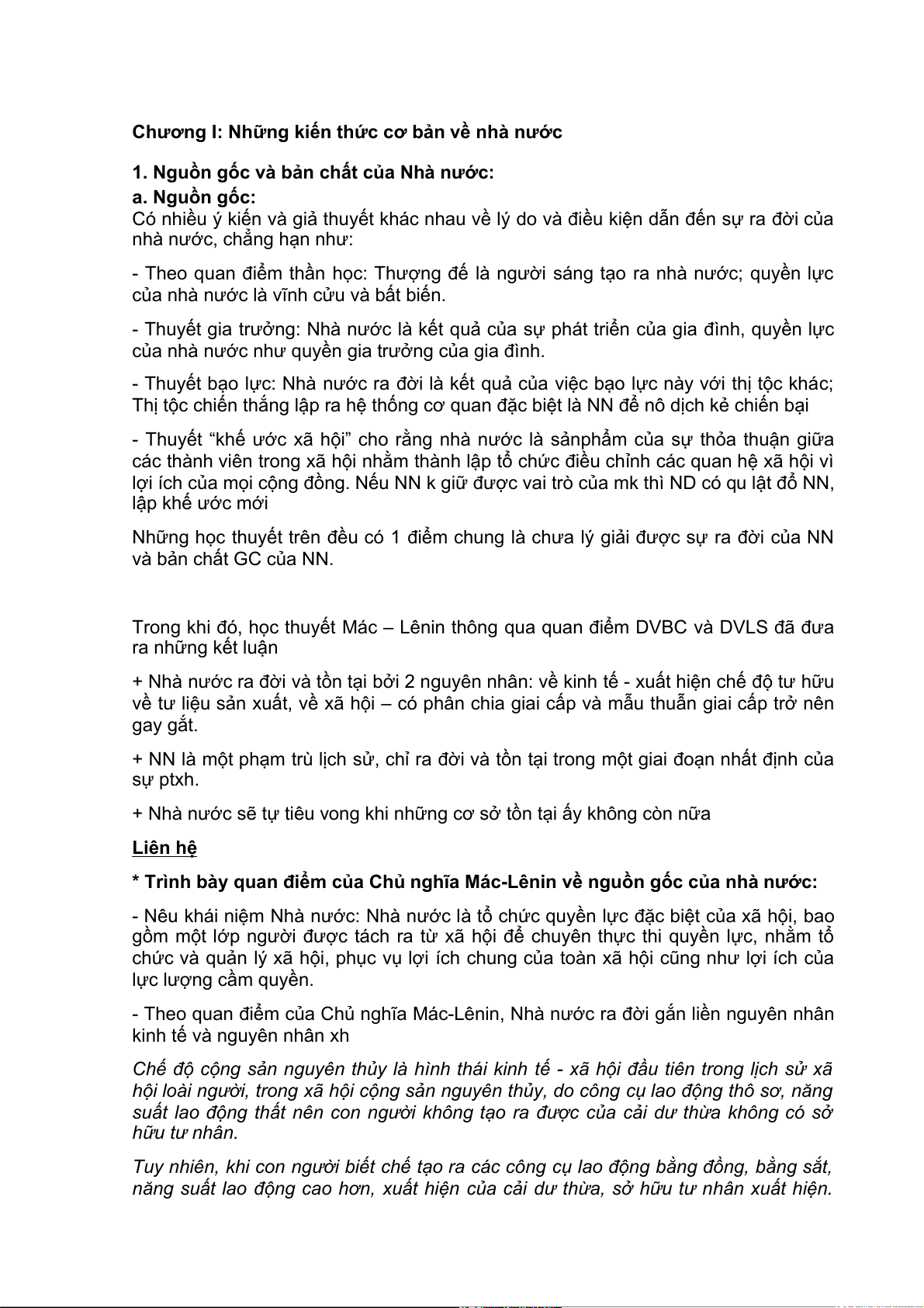1. Nguồn gốc và bản chất của Nhà nước: a. Nguồn gốc: